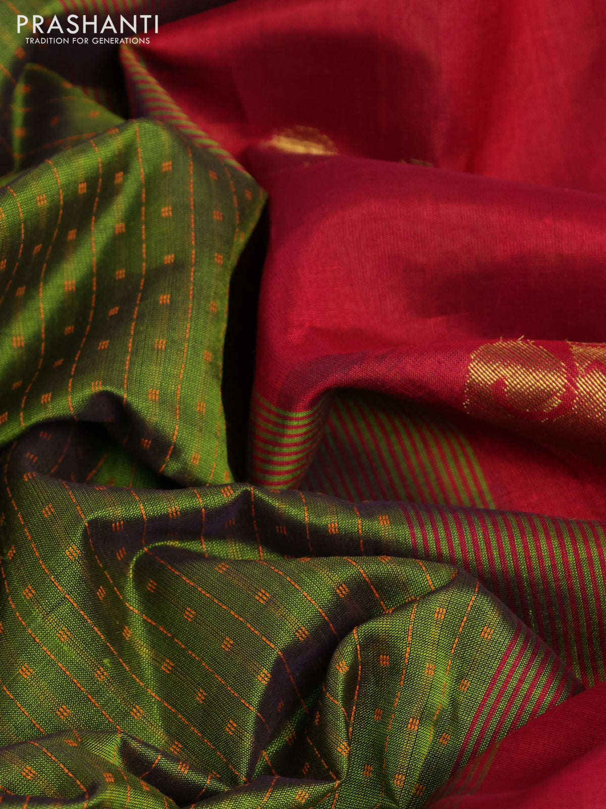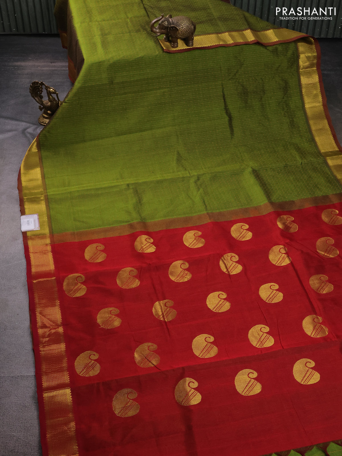 10 Yards silk cotton saree sap green and maroon with allover thread weaves and zari woven border