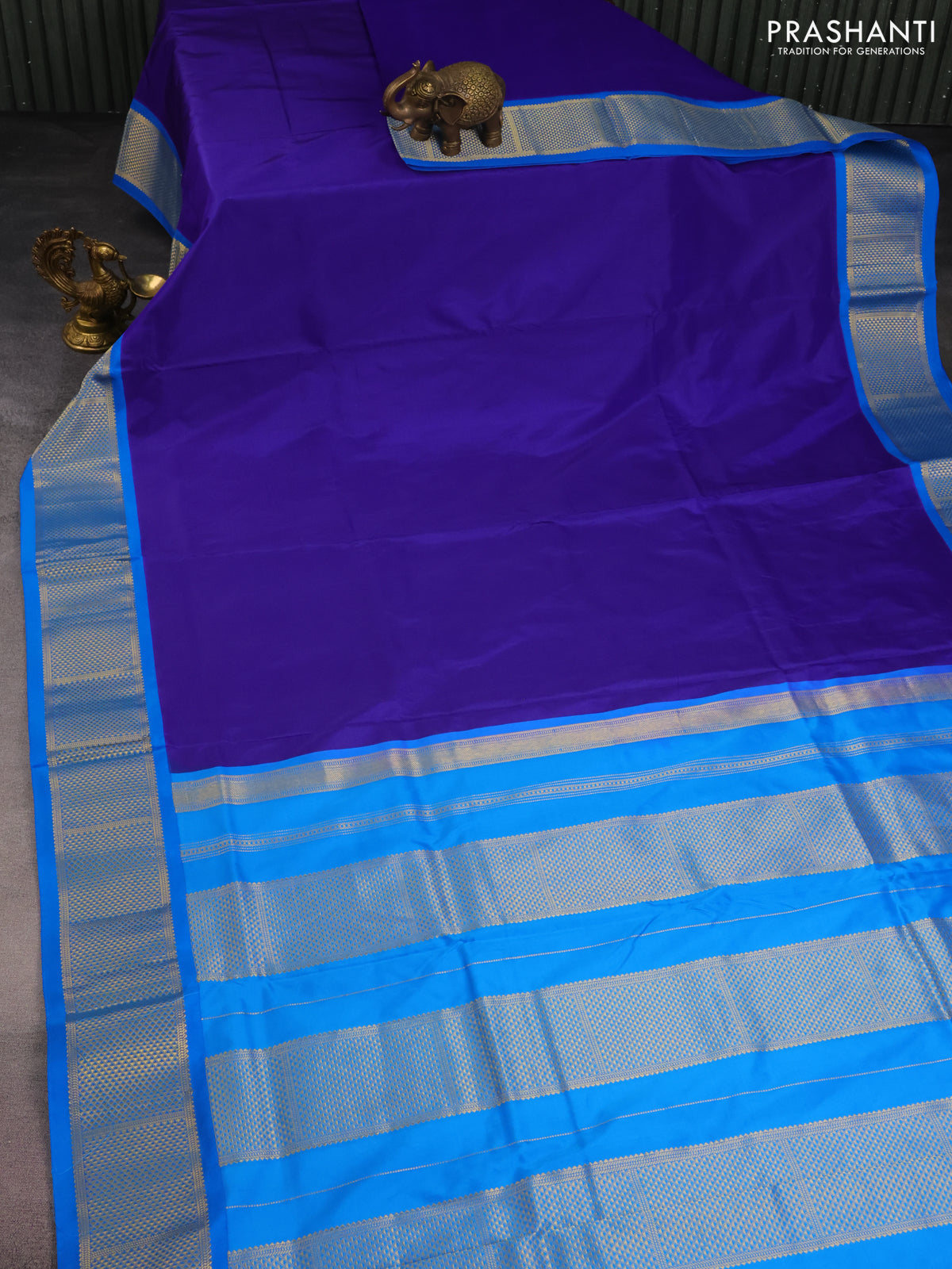 10 Yards silk saree blue and cs blue with plain body and zari woven border