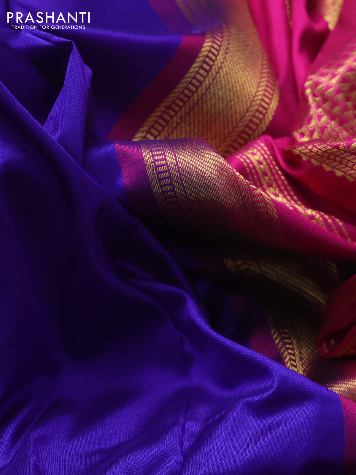 10 Yards silk saree blue and pink with plain body and zari woven border