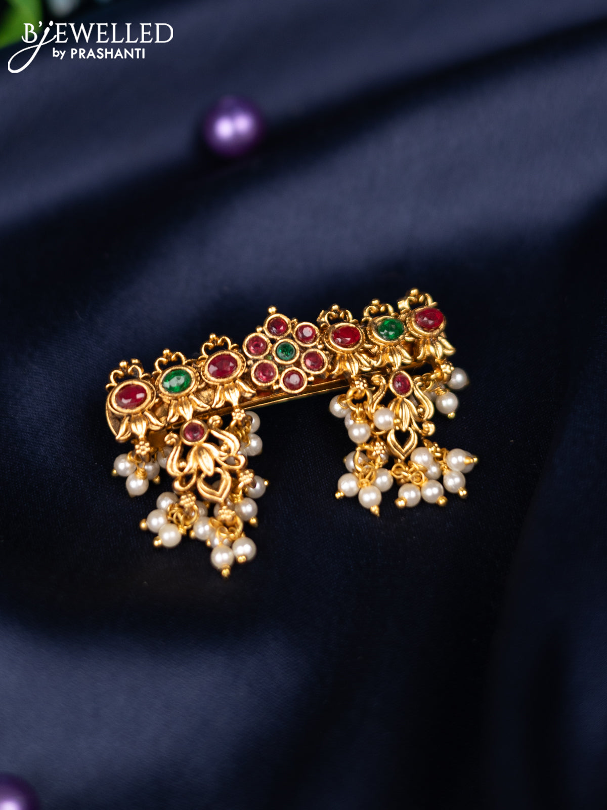 Antique antique medium size hair clips with kemp stones and pearl hangings