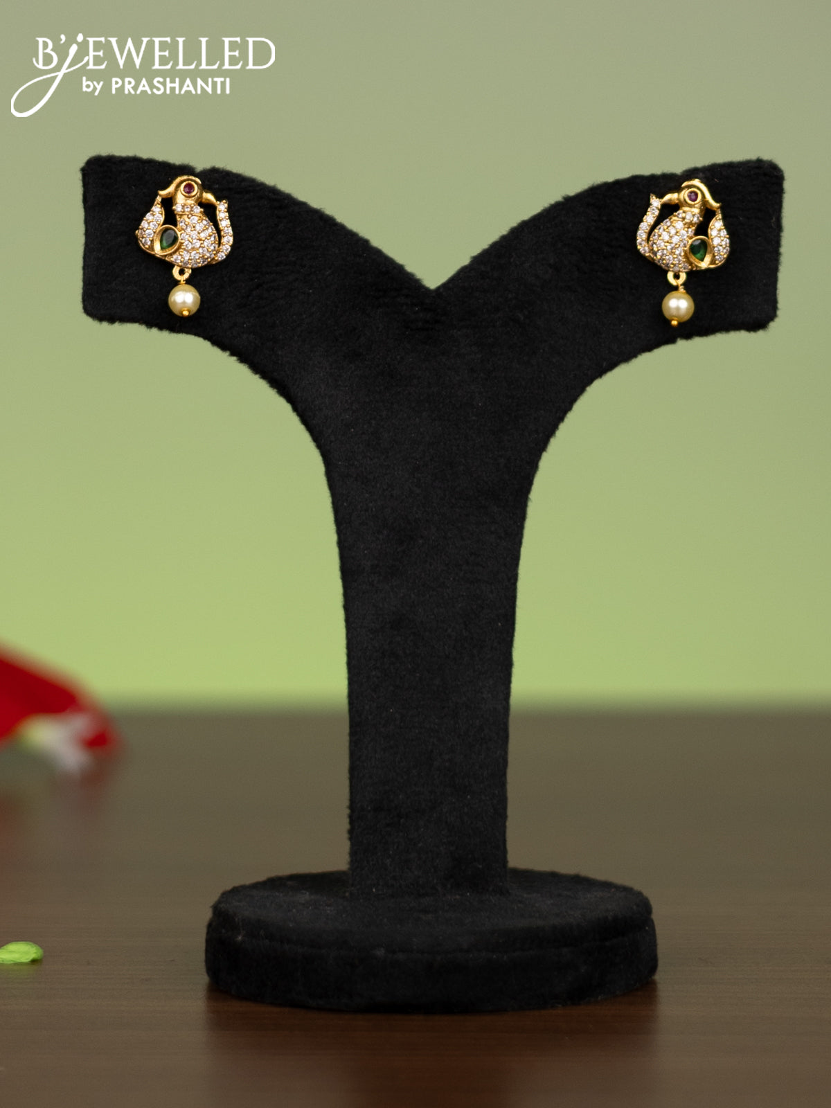 Antique attigai necklace lakshmi pendant with kemp & cz stones and pearl hangings