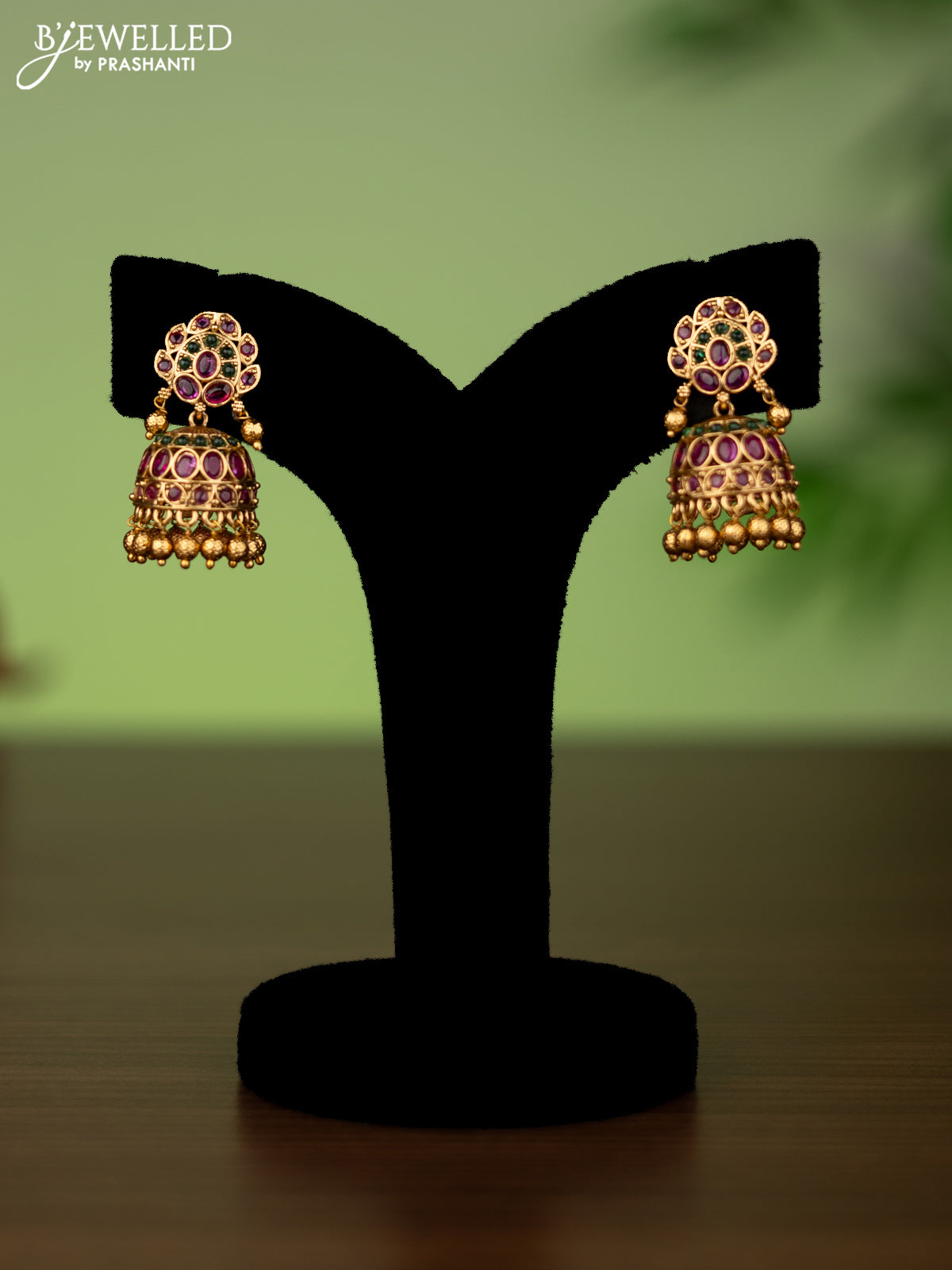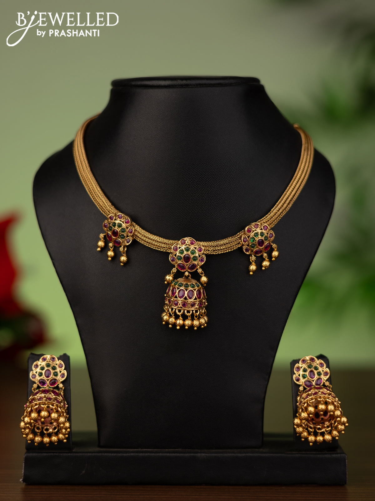 Antique attigai necklace with kemp stones and golden beads hanging