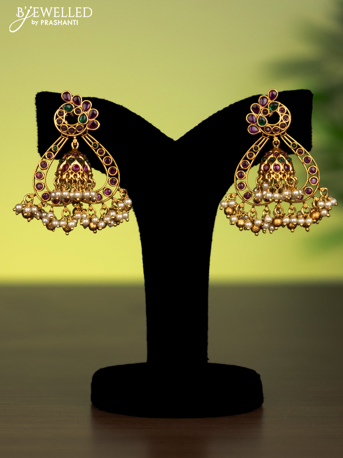 Antique attigai necklace with kemp stones and pearl & golden beads hanging