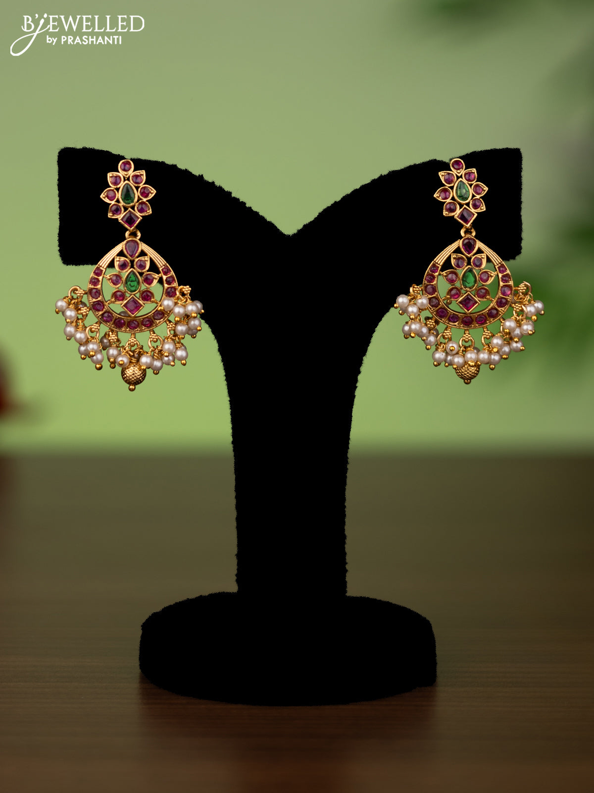 Antique attigai necklace with kemp stones and pearl & golden beads hanging