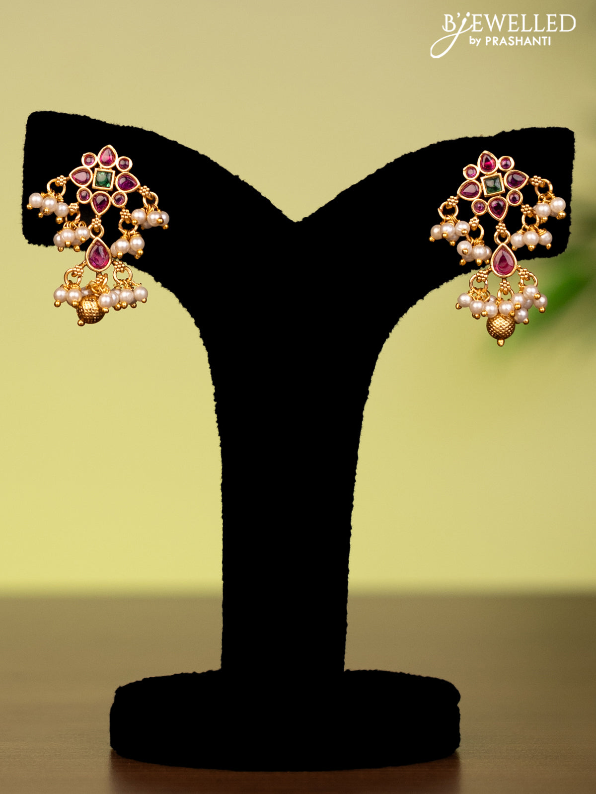 Antique attigai necklace with kemp stones and pearl & golden beads hangings