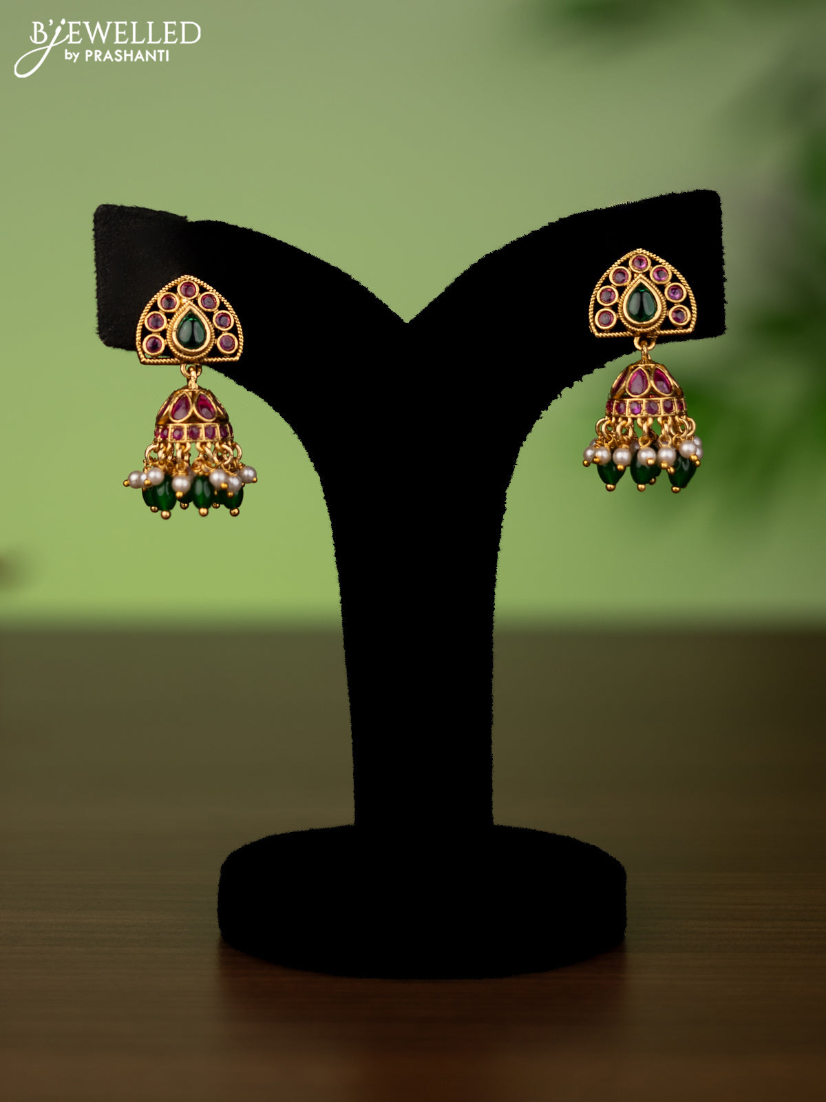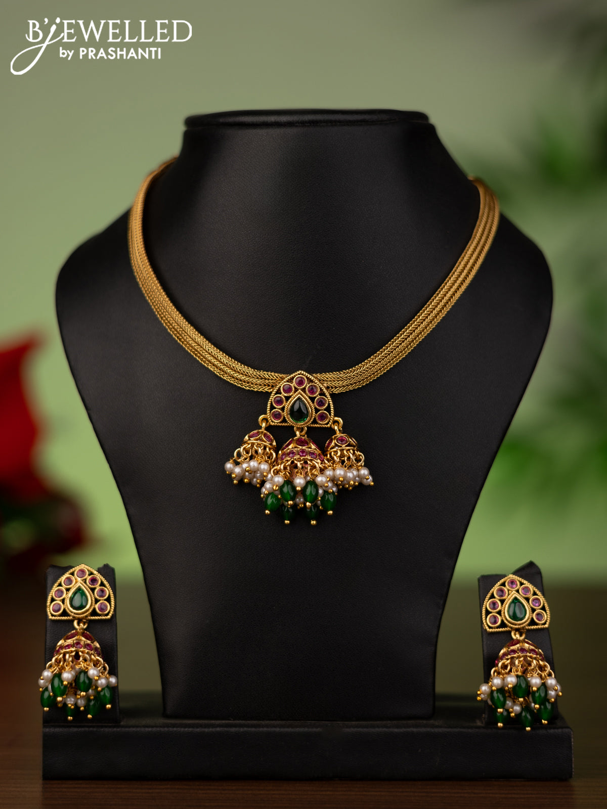 Antique attigai necklace with kemp stones, green and pearl hangings