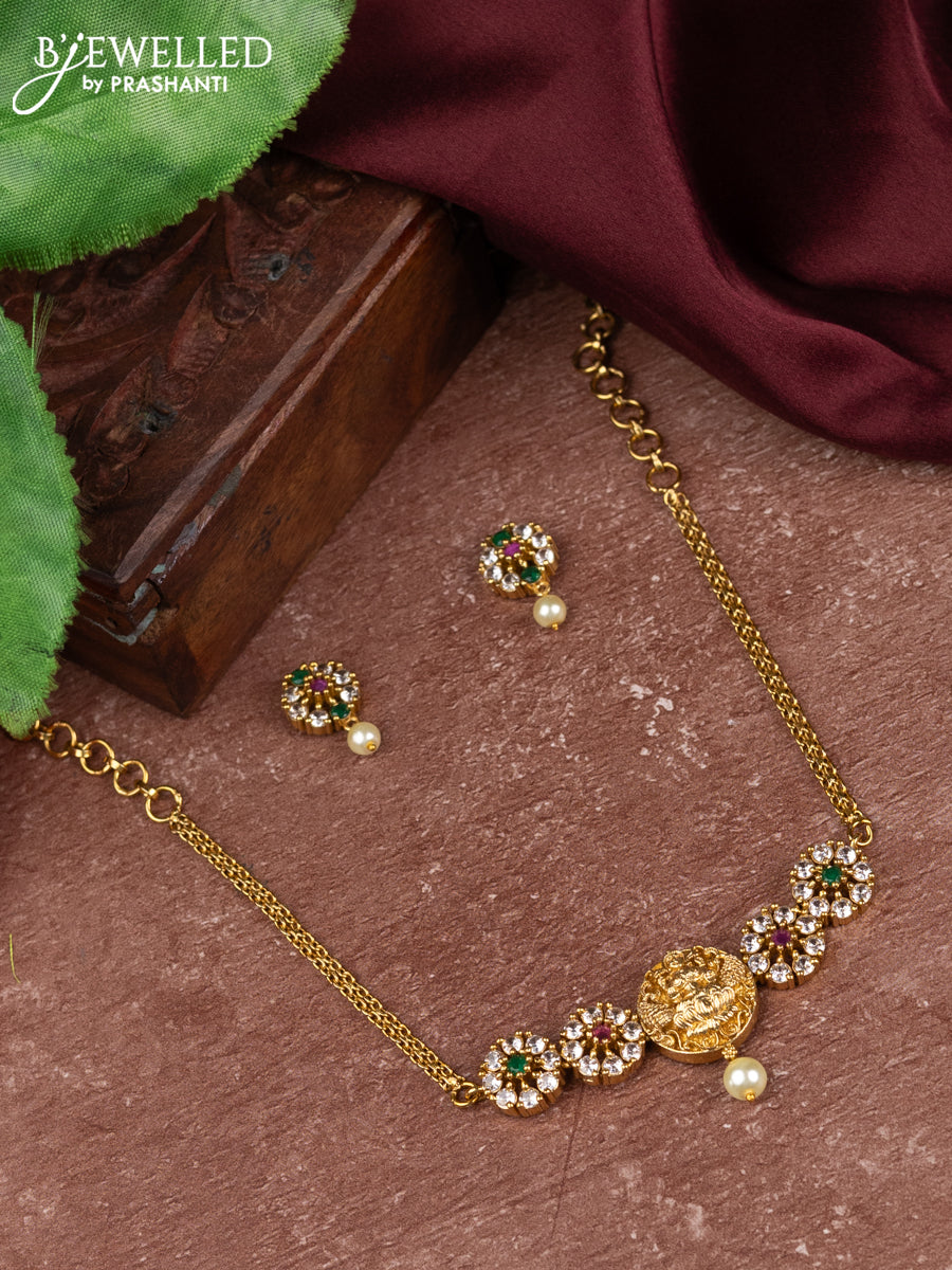 Antique choker lakshmi design with kemp & cz stones and pearl hanging