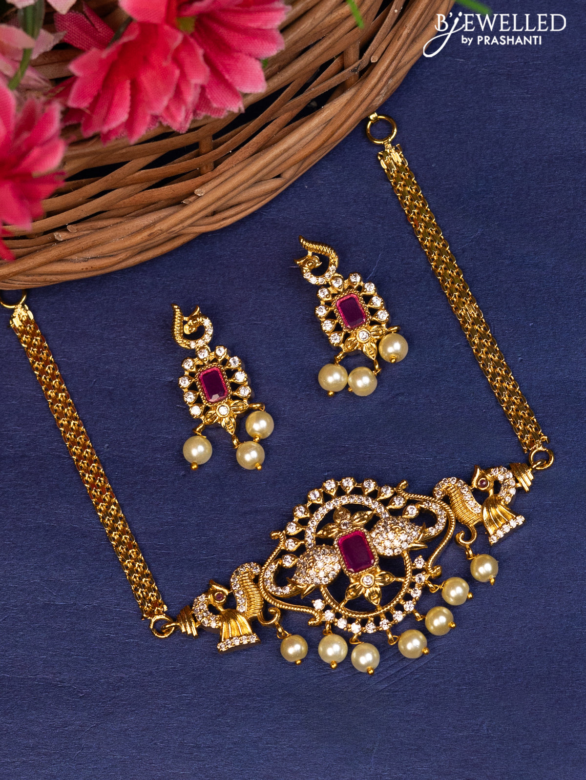 Antique choker peacock design with pink kemp & cz stones and pearl hangings