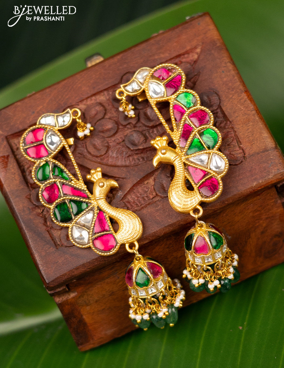 Antique earcuff jhumka peacock design with jadau kundan stones and pearl & beads hanging