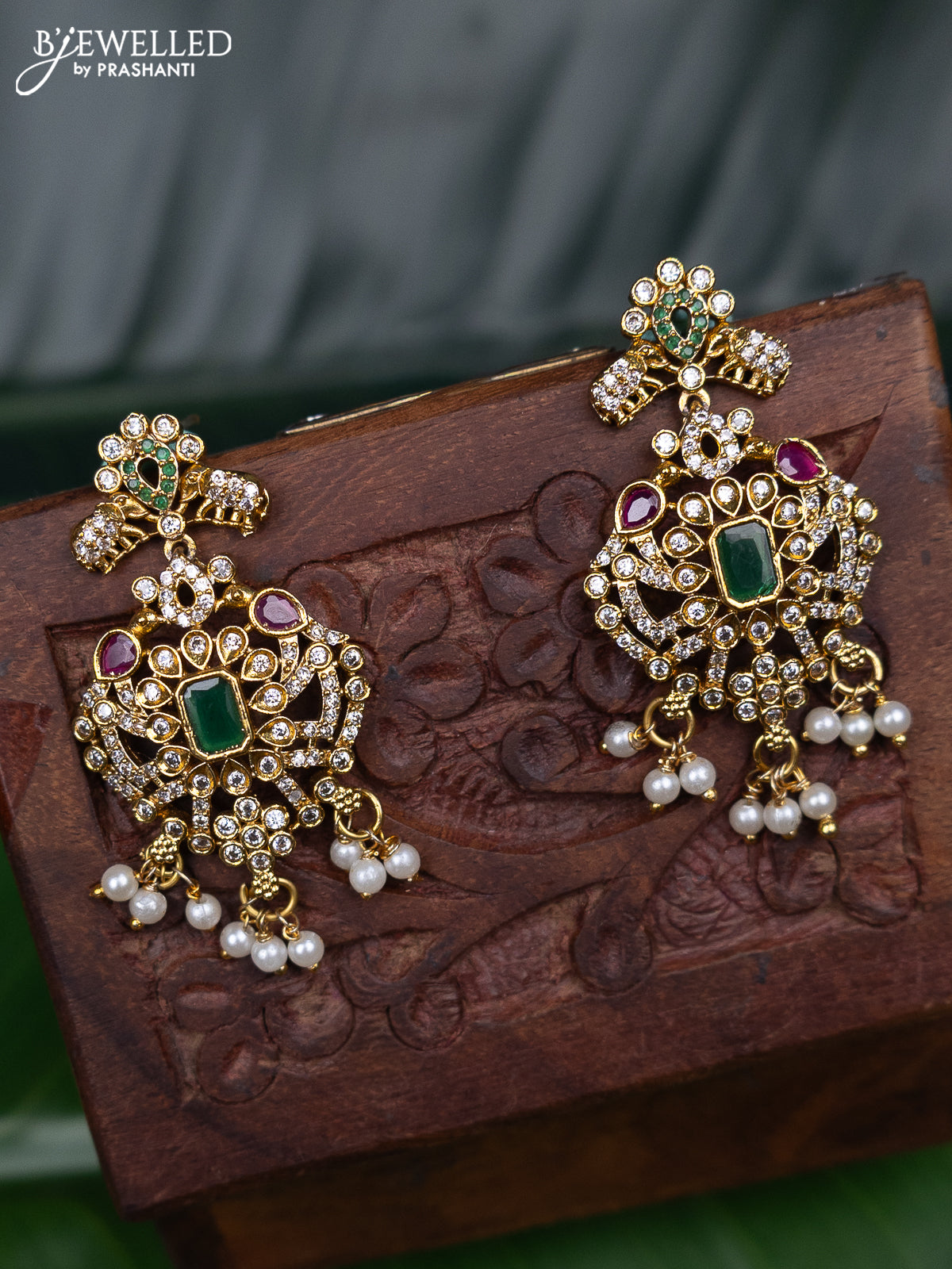 Antique earring elephant design with kemp & cz stones and pearl hangings