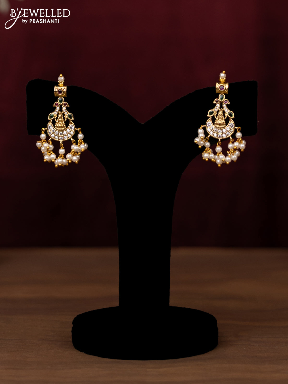 Antique guttapusalu haram lakshmi & chandbali design with kemp & cz stones and pearl hangings