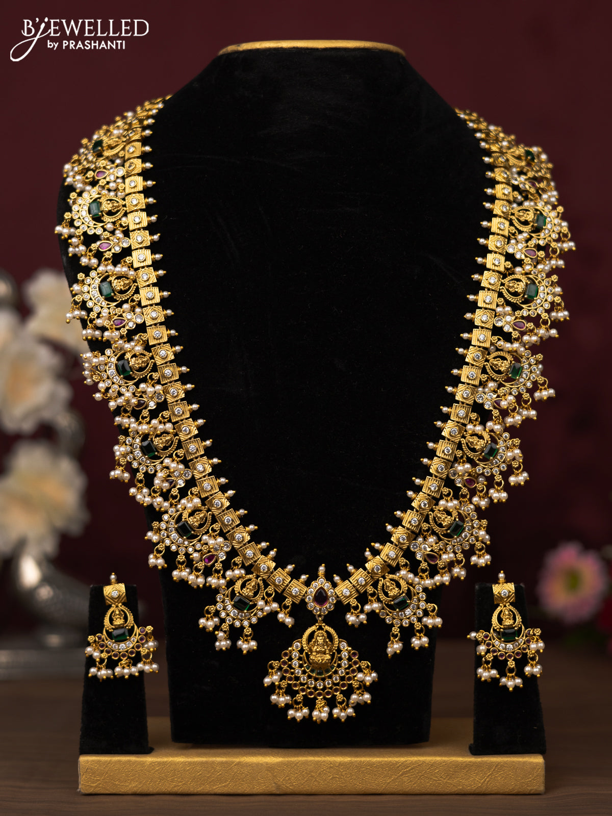 Antique guttapusalu haram lakshmi design with kemp & cz stones and pearl hangings