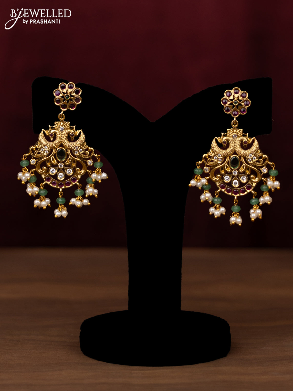 Antique guttapusalu Necklace double peacock design with kemp,cz stones and pearl and beads hangings