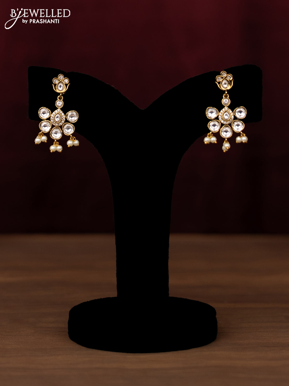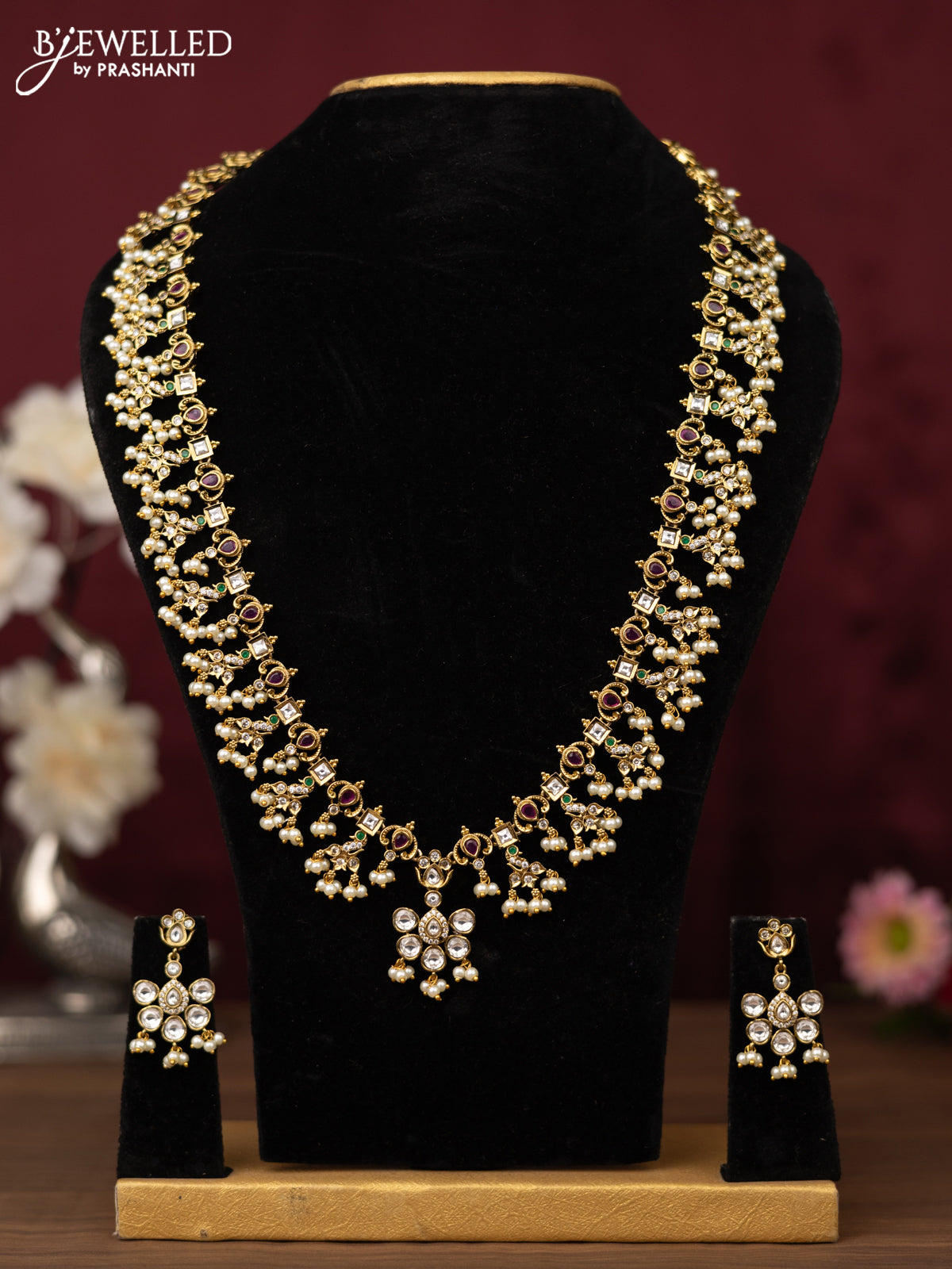 Antique guttapusalu Necklace floral design with kemp,cz stones and pearl hangings