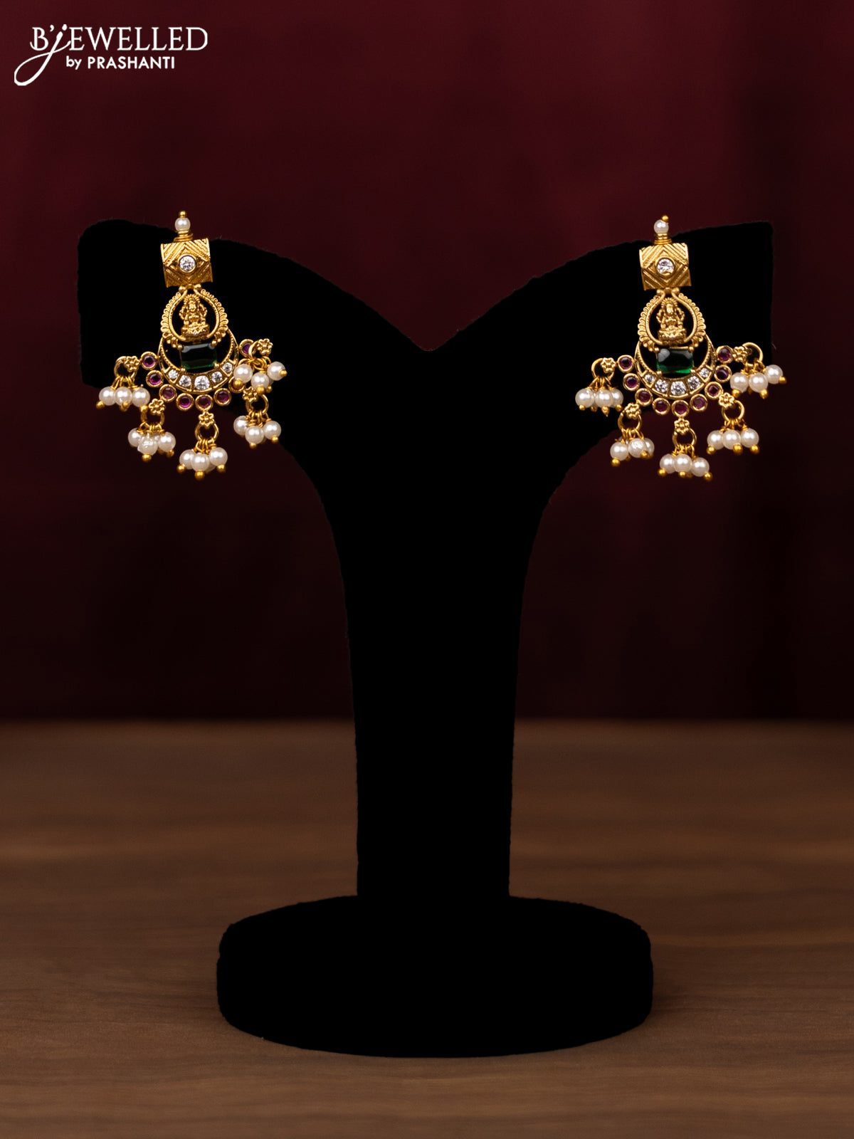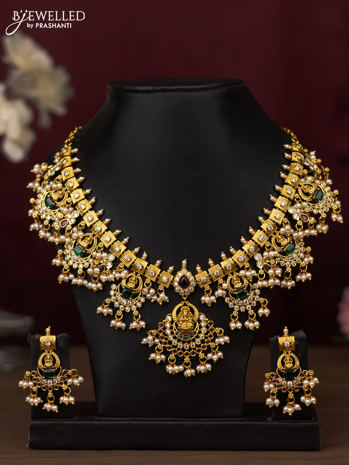 Antique guttapusalu Necklace lakshmi design with kemp,cz stones and pearl hangings