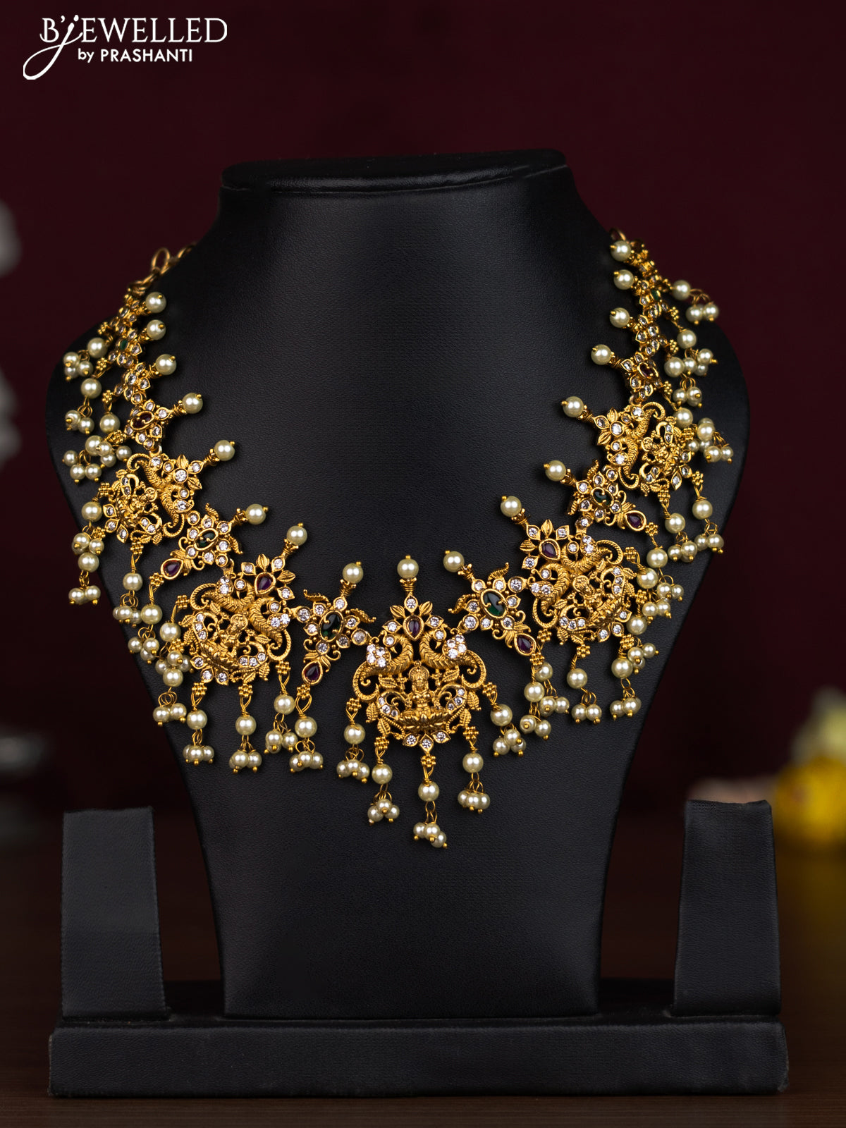 Antique guttapusalu necklace lakshmi design with kemp & cz stones and pearl hangings without earrings