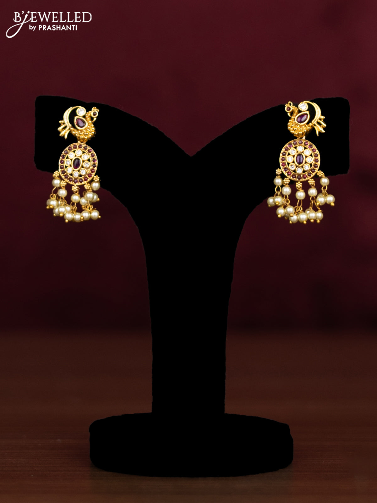 Antique guttapusalu necklace peacock design with pink kemp & cz stones and pearl hangings