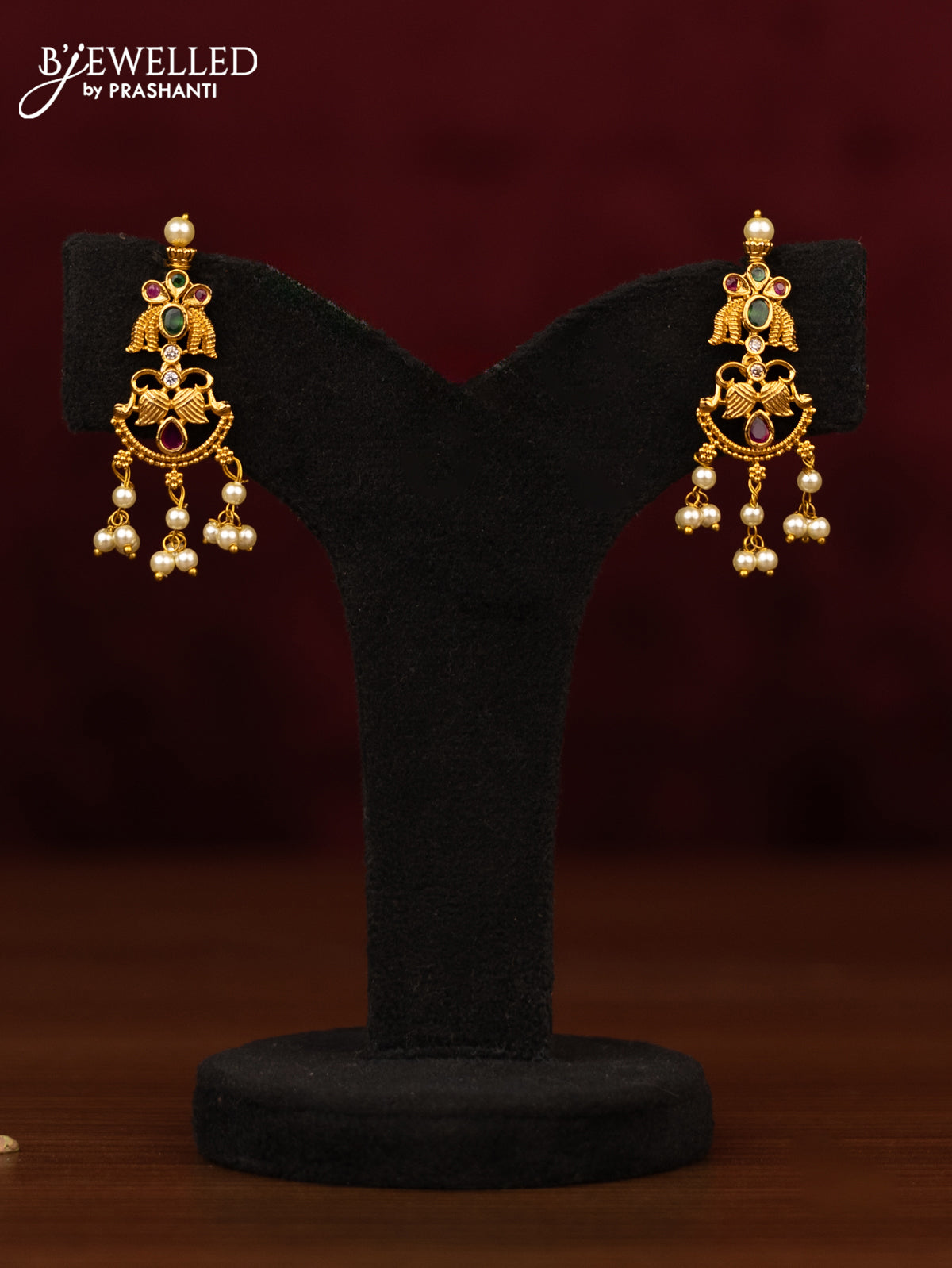 Antique guttapusalu necklace with kemp & cz stones and pearl hangings