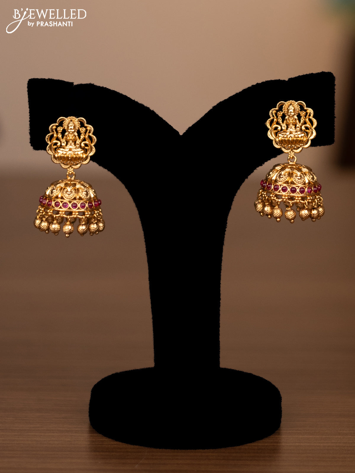 Antique haaram peacock & lakshmi design with pink kemp stones and golden beads hanging