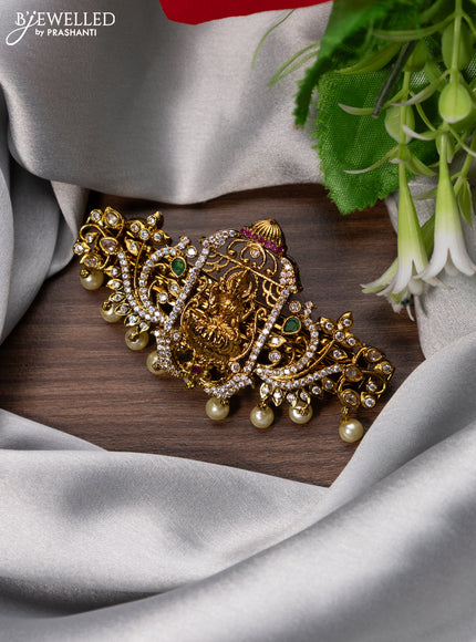 Antique hair clip medium size lakshmi design with kemp & cz stones and pearl hangings