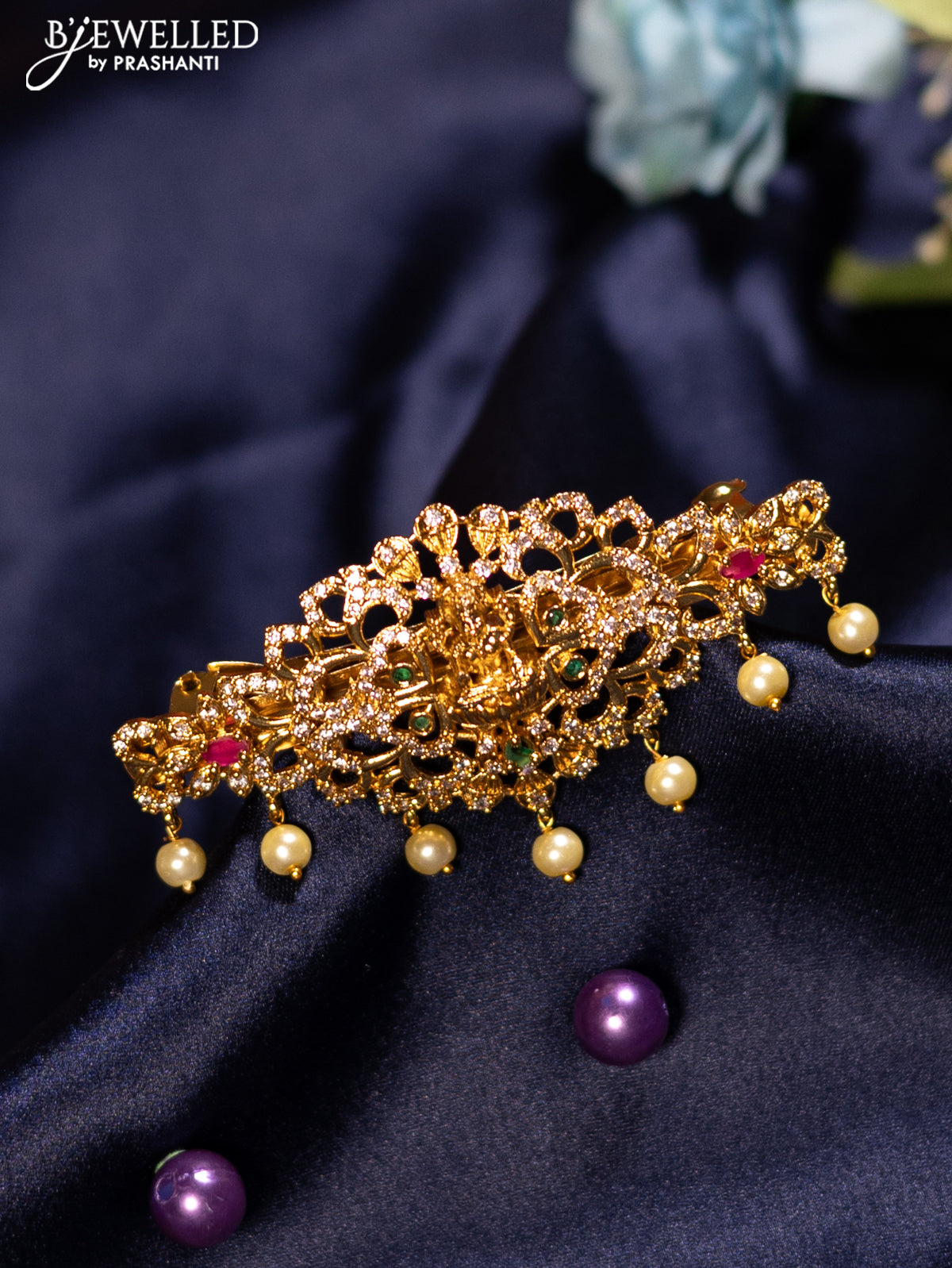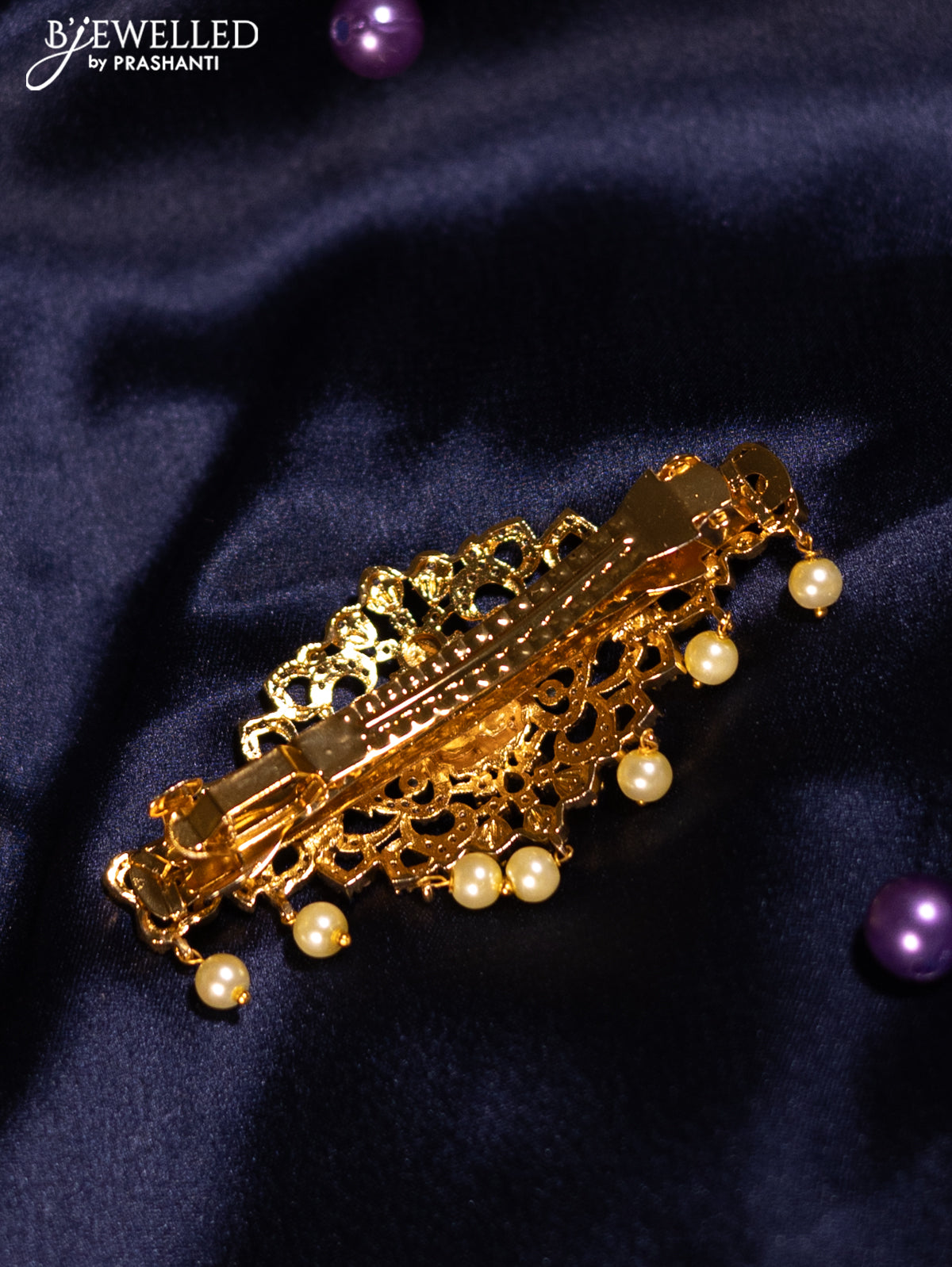 Antique hair clip medium size lakshmi design with kemp & cz stones and pearl hangings