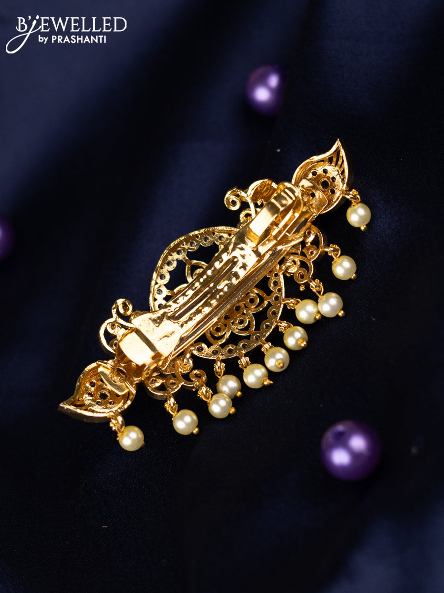 Antique hair clips small size with kemp & cz stones and pearl hangings
