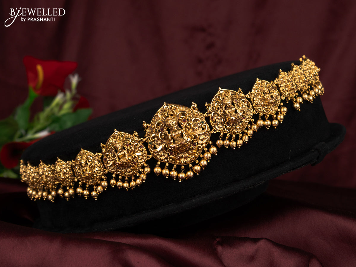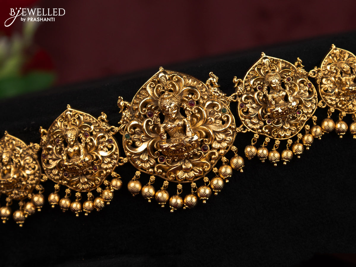 Antique hip chain lakshmi design with kemp stones and golden beads hanging