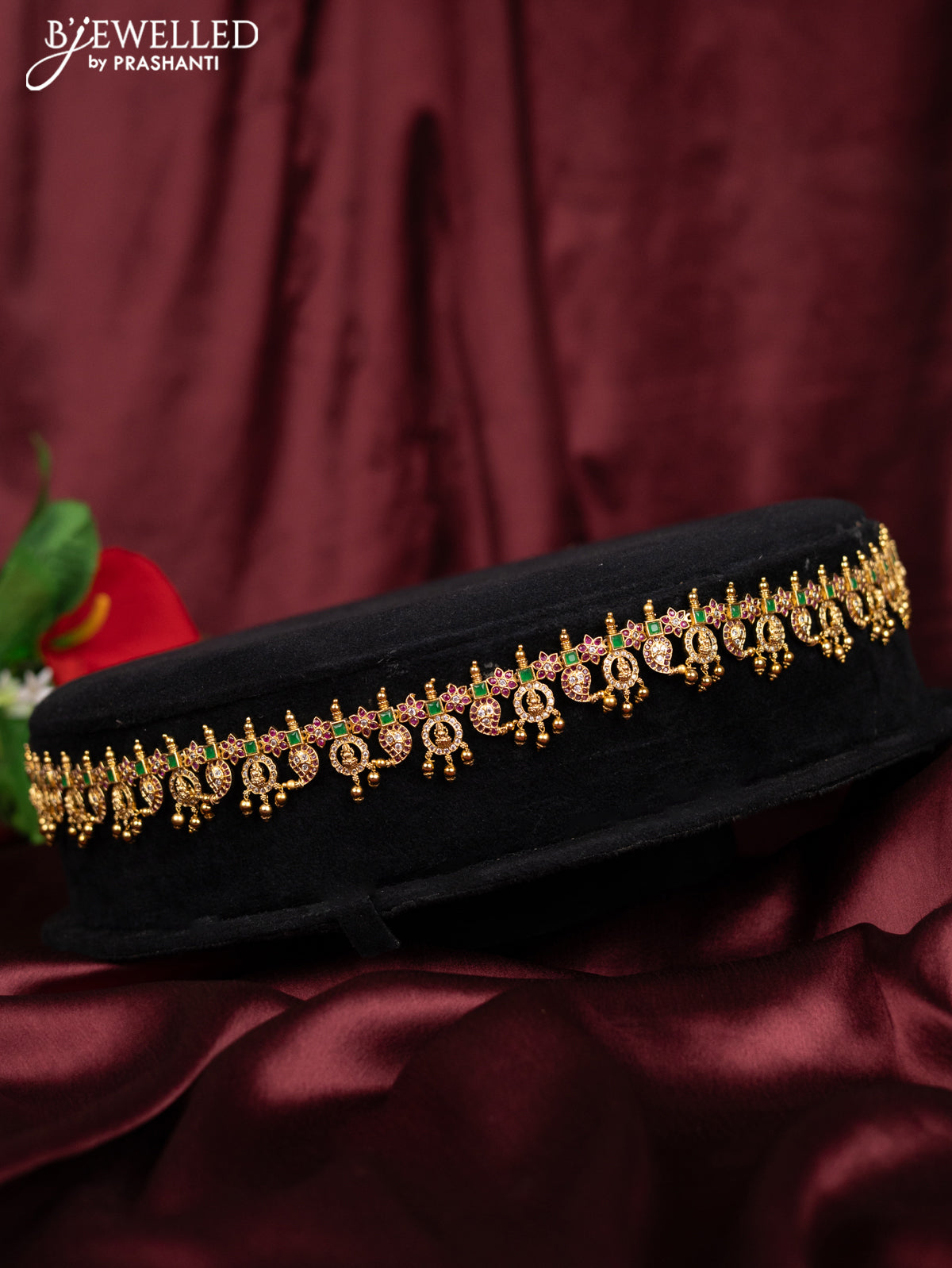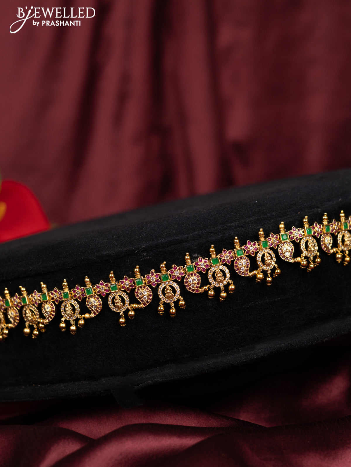Antique hip chain manga & lakshmi design with kemp & cz stones and golden beads hanging