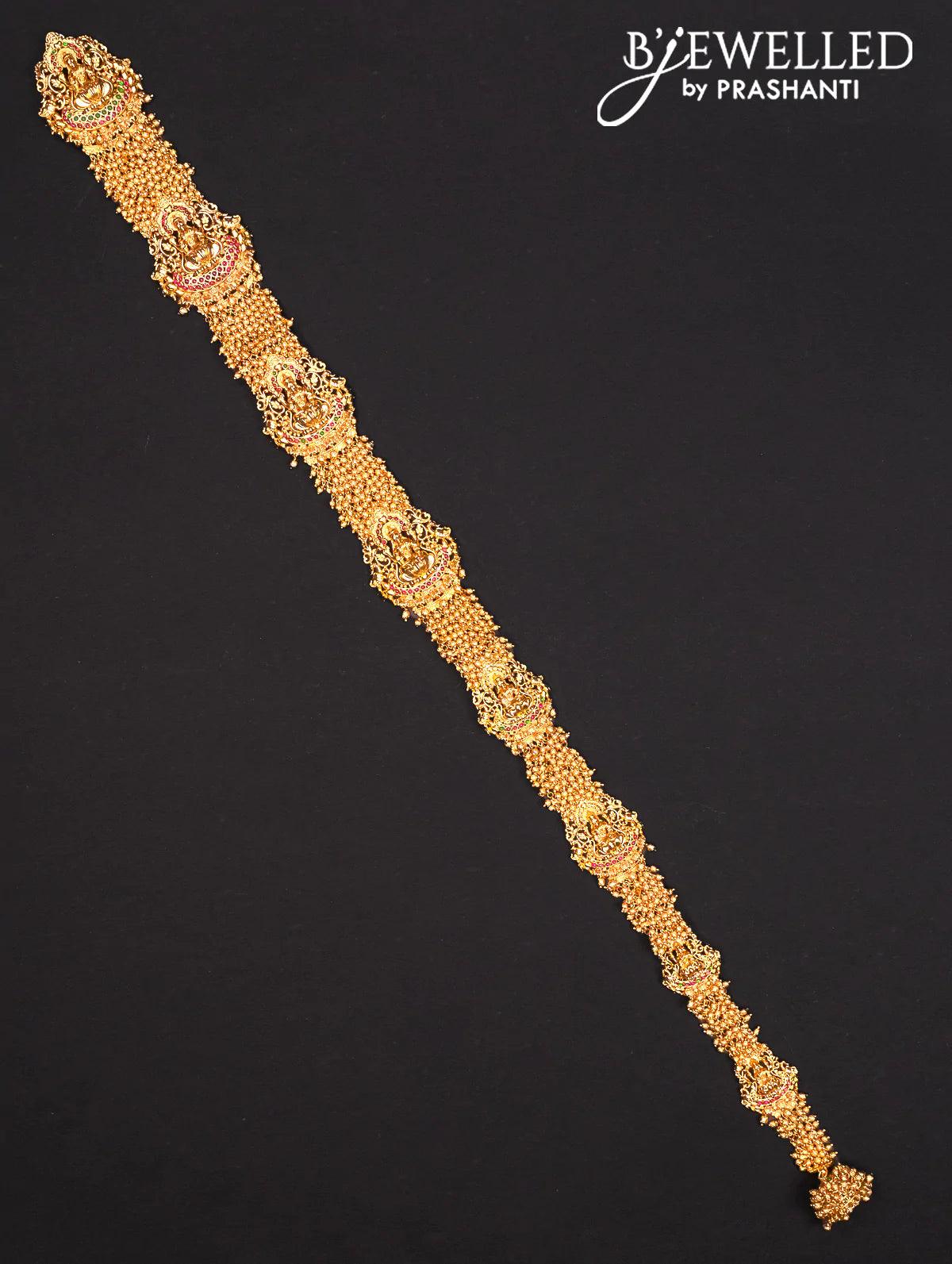 Antique jada billai lakshmi design with kemp stones and golden beads hanging