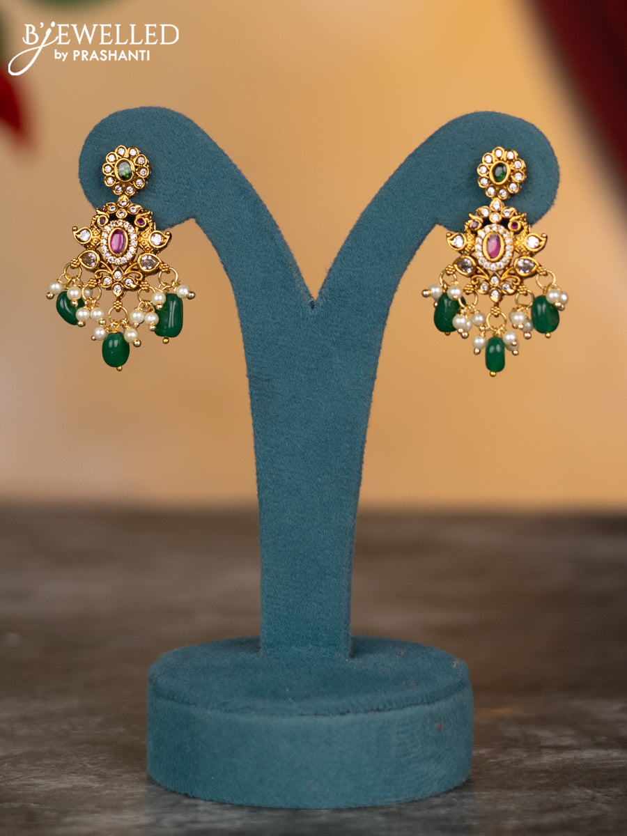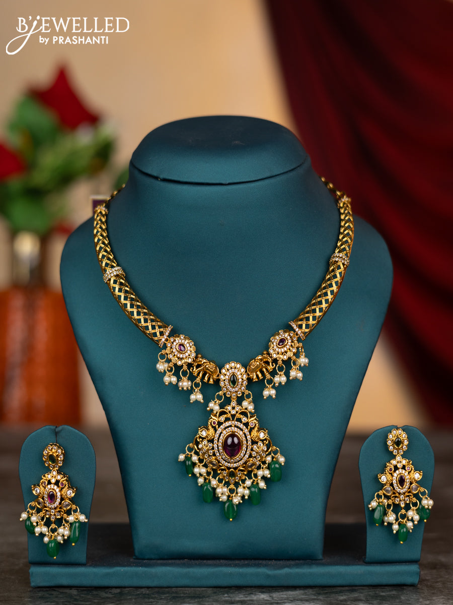 Antique necklace elephant design with kemp & cz stones and green beads hangings