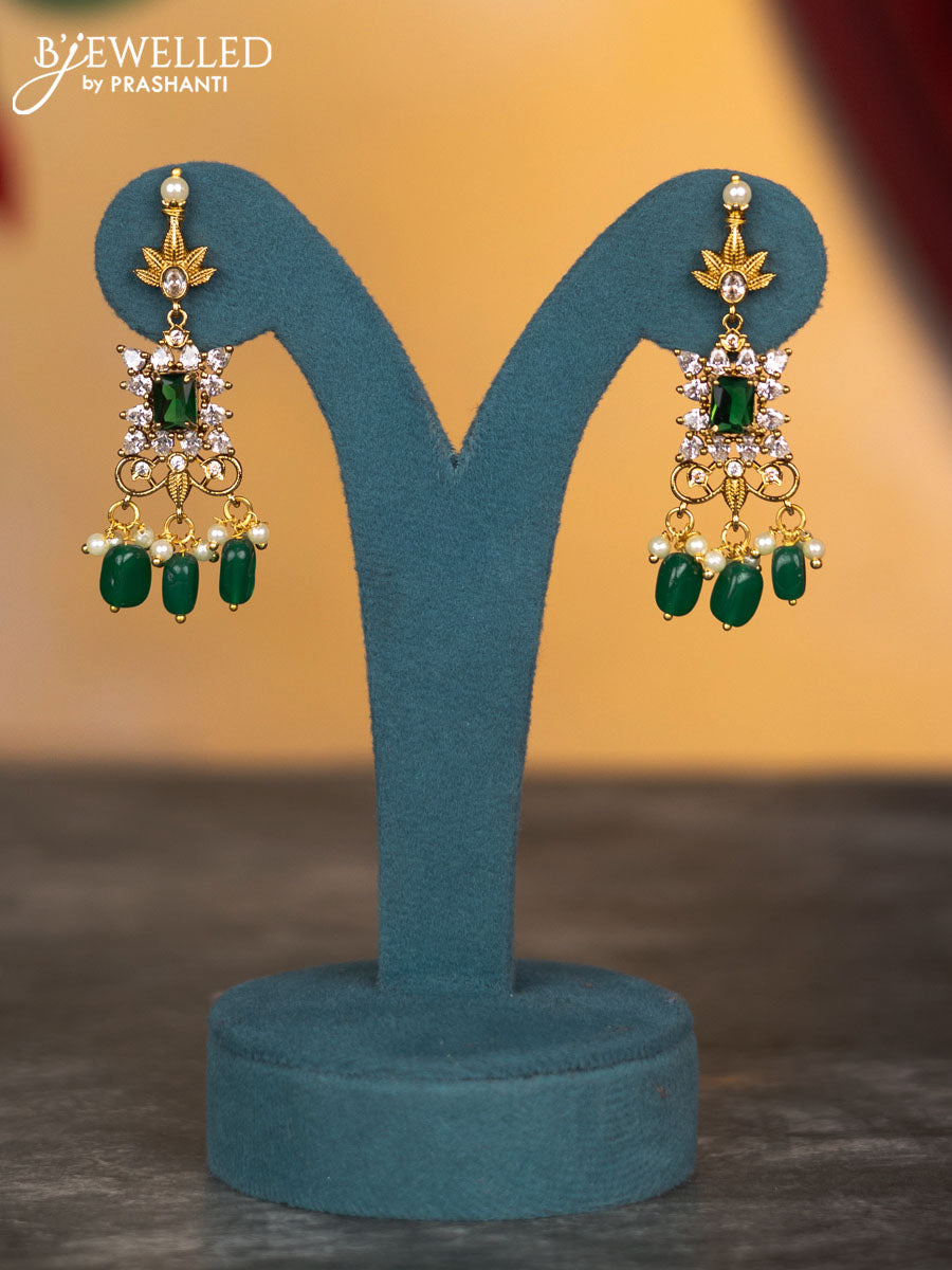Antique necklace floral design with green kemp & cz stones and pearl & green beads hangings