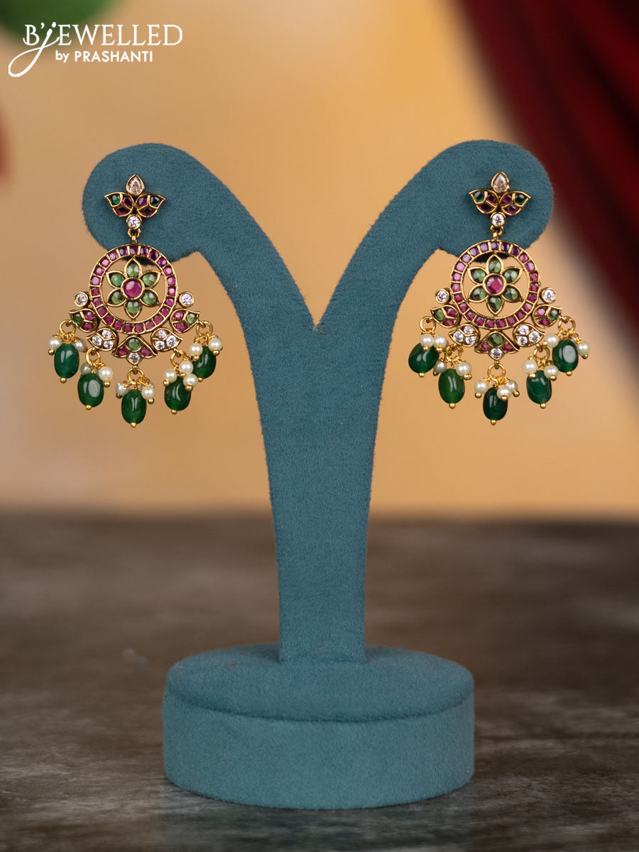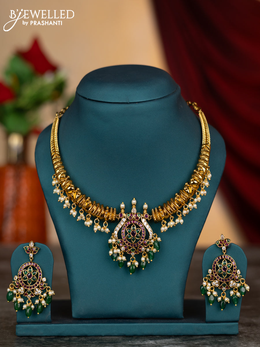Antique necklace floral design with kemp & cz stones and pearl & green beads hangings