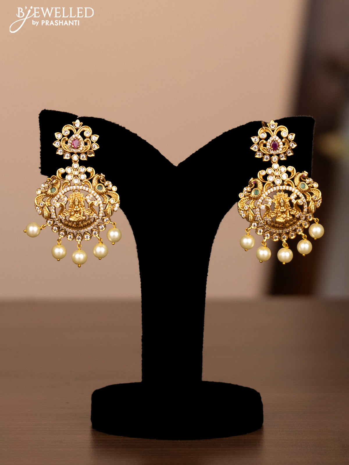 Antique necklace lakshmi design with cz stones and pearl hanging