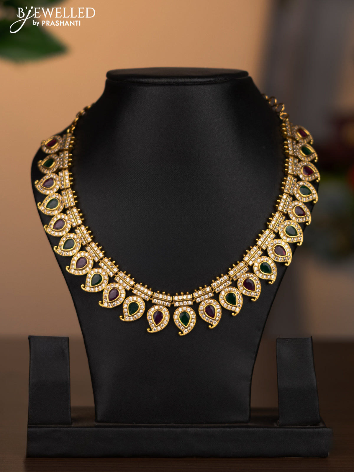 Antique necklace manga pattern with kemp and cz stones without earrings