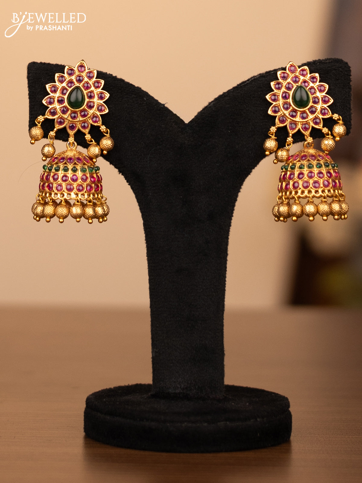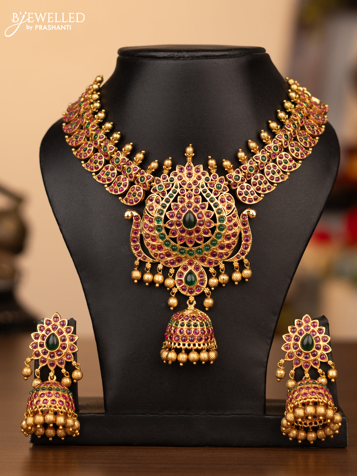 Antique necklace manga pattern with kemp stones and golden beads hanging
