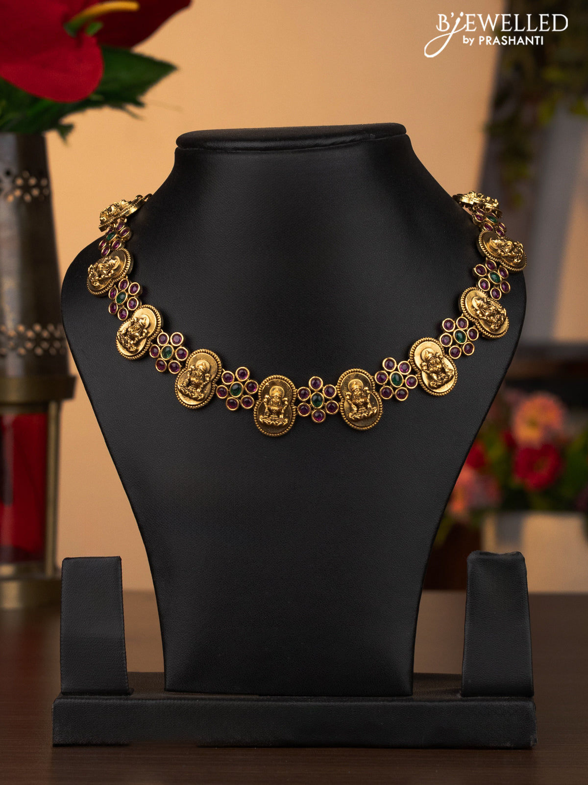 Antique necklace with lakshmi design and kemp stones without earrings