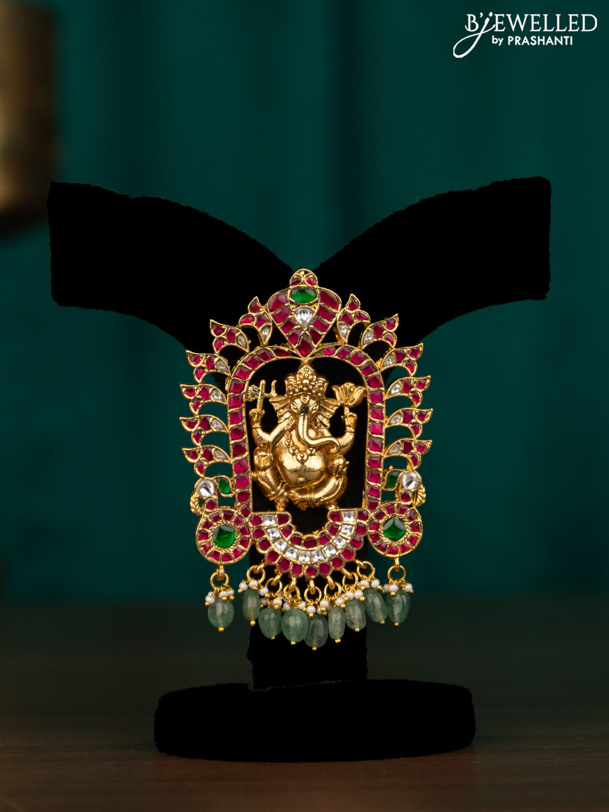 Antique pendant ganesha design with jadau kundan stones and natural beads & pearl hanging