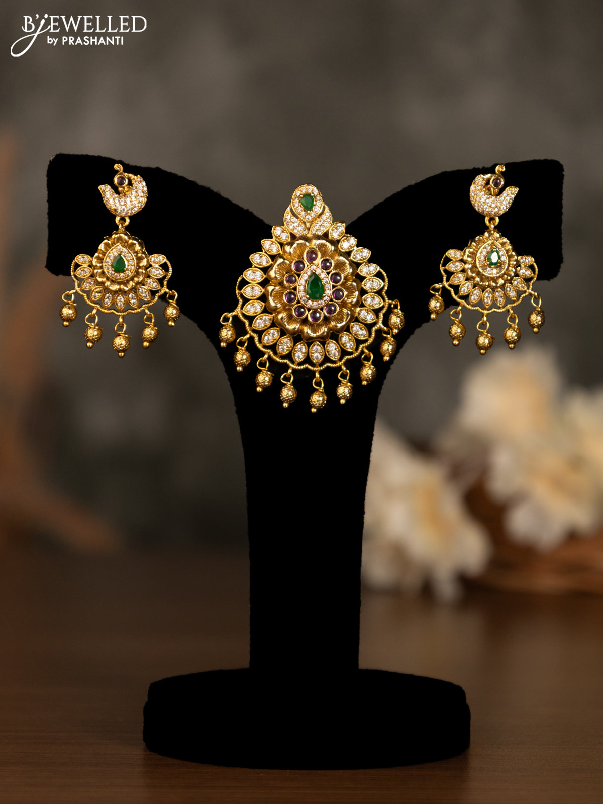 Antique pendant set with kemp & cz stones and golden beads hanging