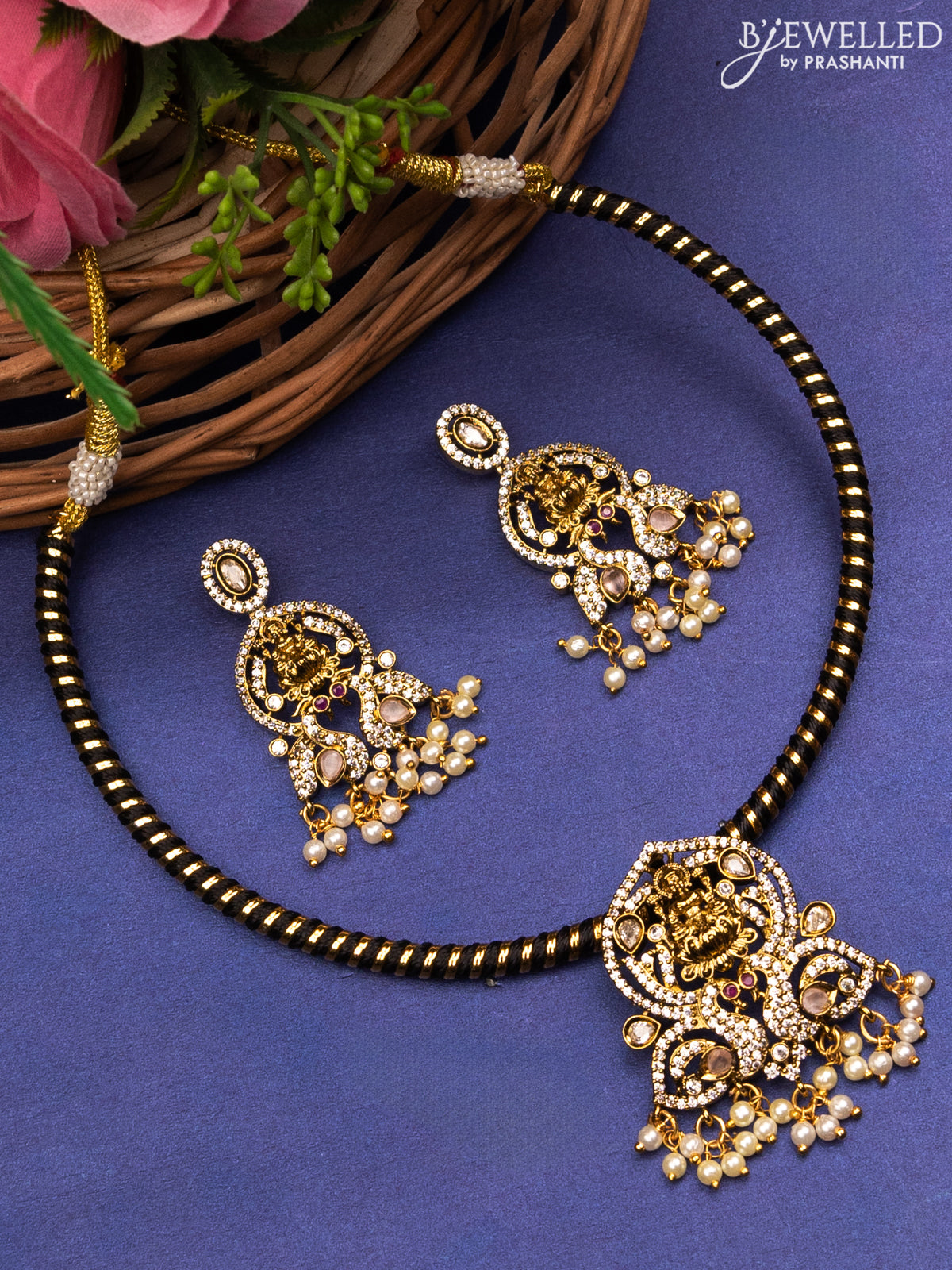 Antique ring type choker lakshmi design with baby pink & cz stones and pearl hangings
