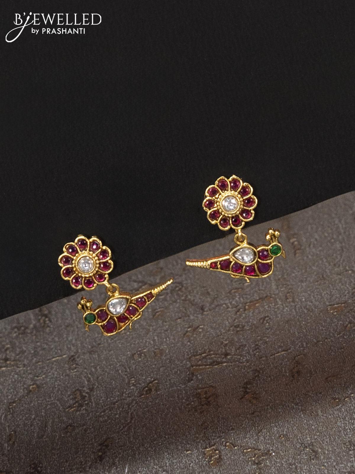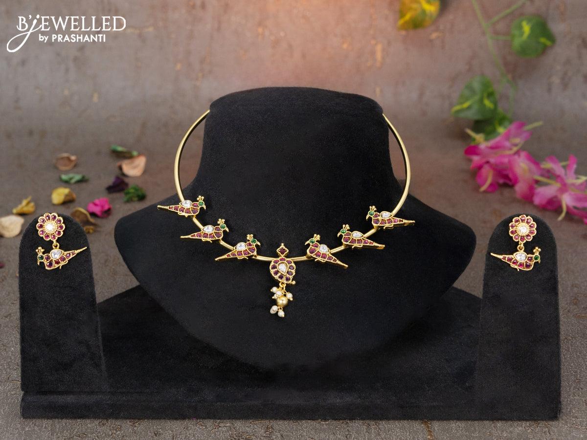 Antique ring type choker parrot design with kemp and cz stone golden beads hangings