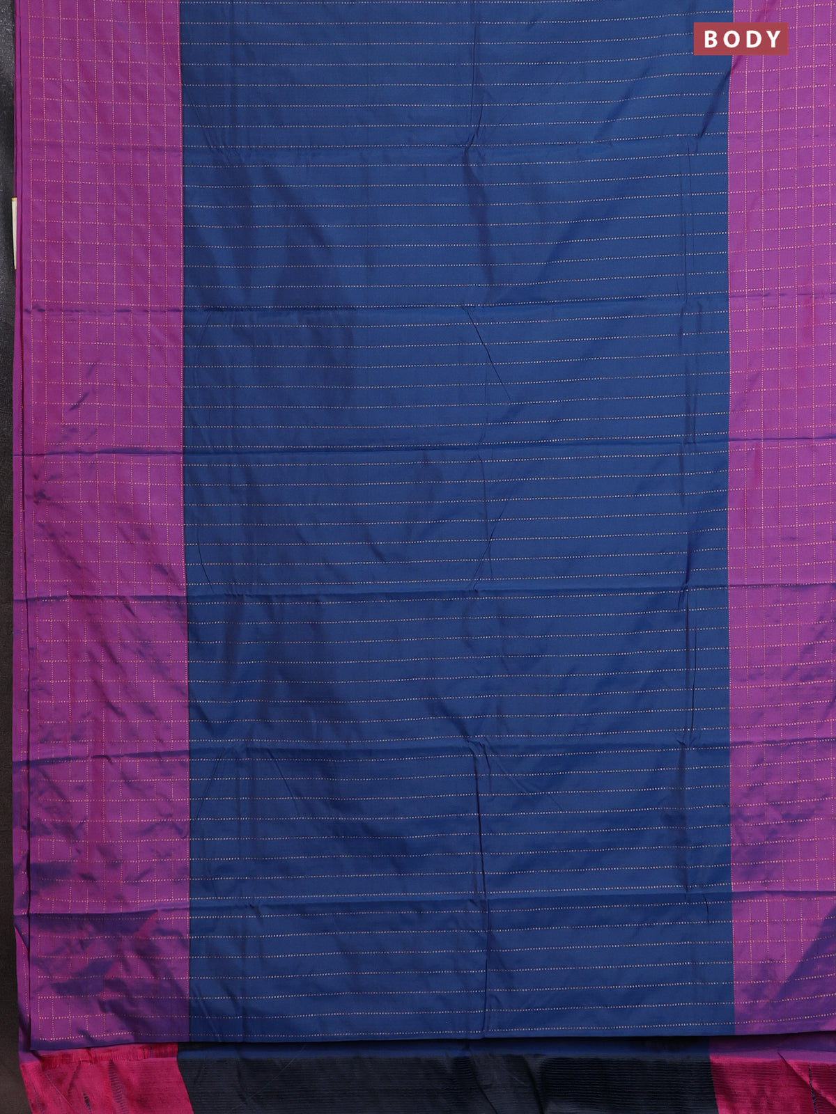 Arani semi silk saree blue and purple with allover copper zari weaves and zari checked border