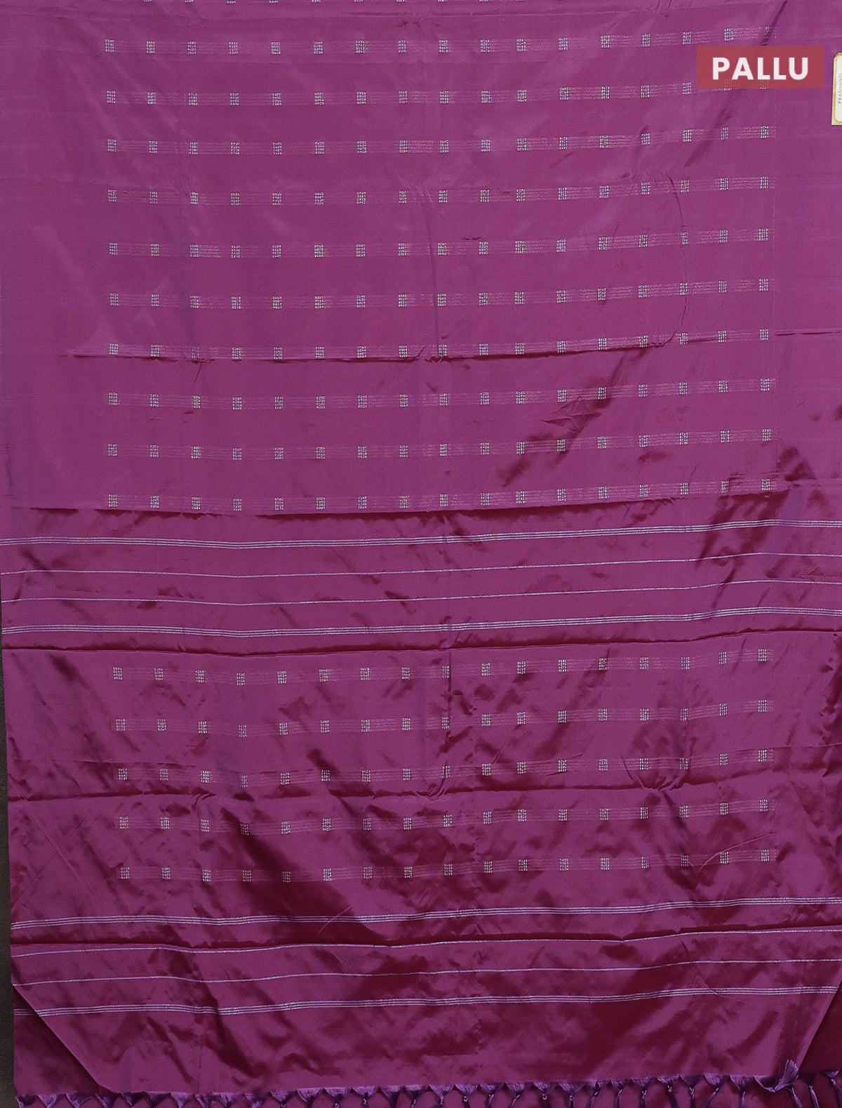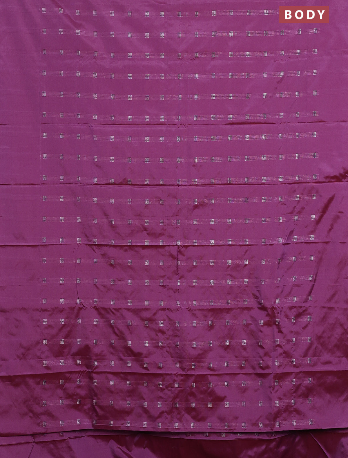 Arani semi silk saree dark pink with silver zari woven buttas in borderless style