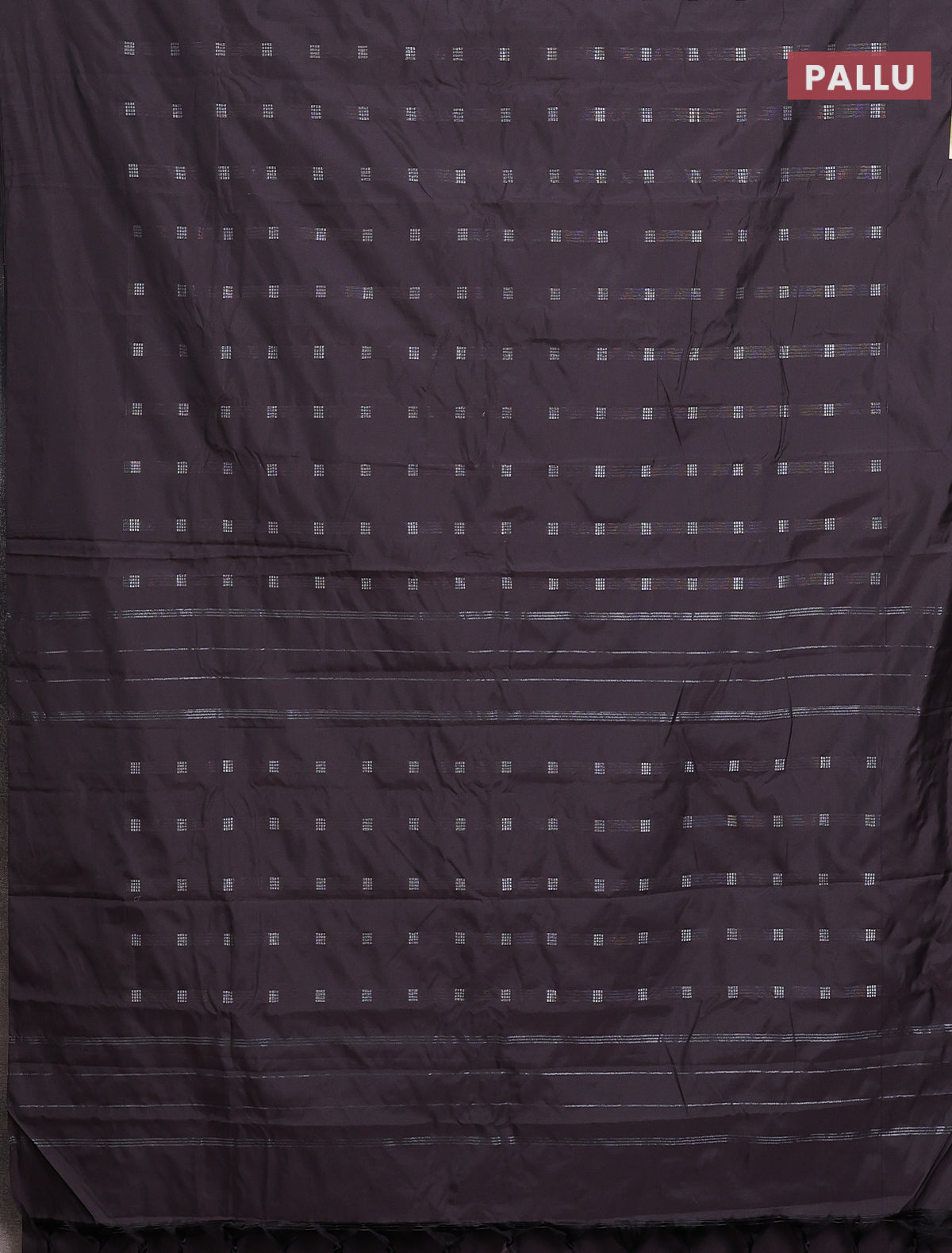 Arani semi silk saree deep coffee brown with silver zari woven buttas in borderless style