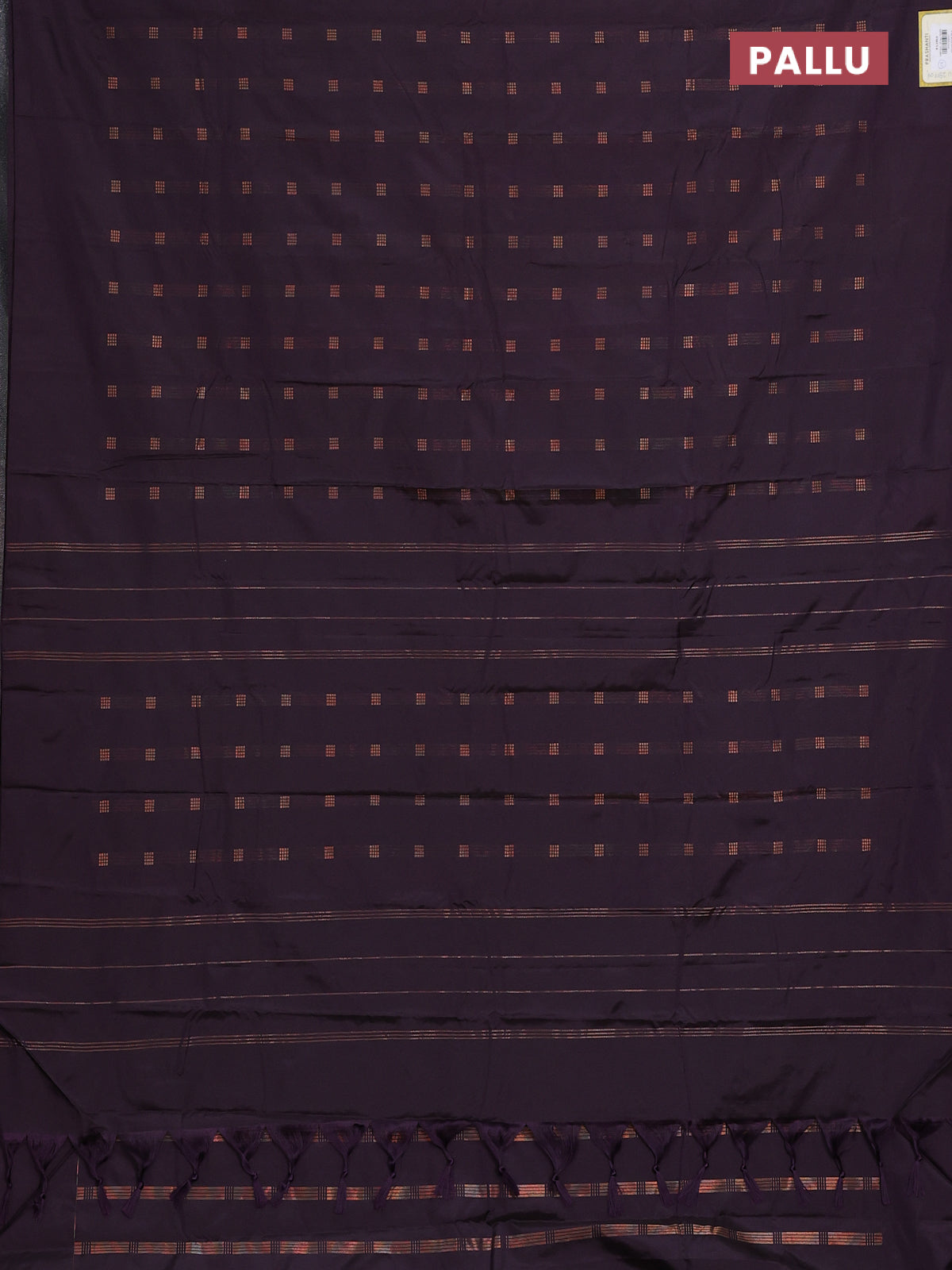 Arani semi silk saree deep jamun with copper zari woven buttas in borderless style