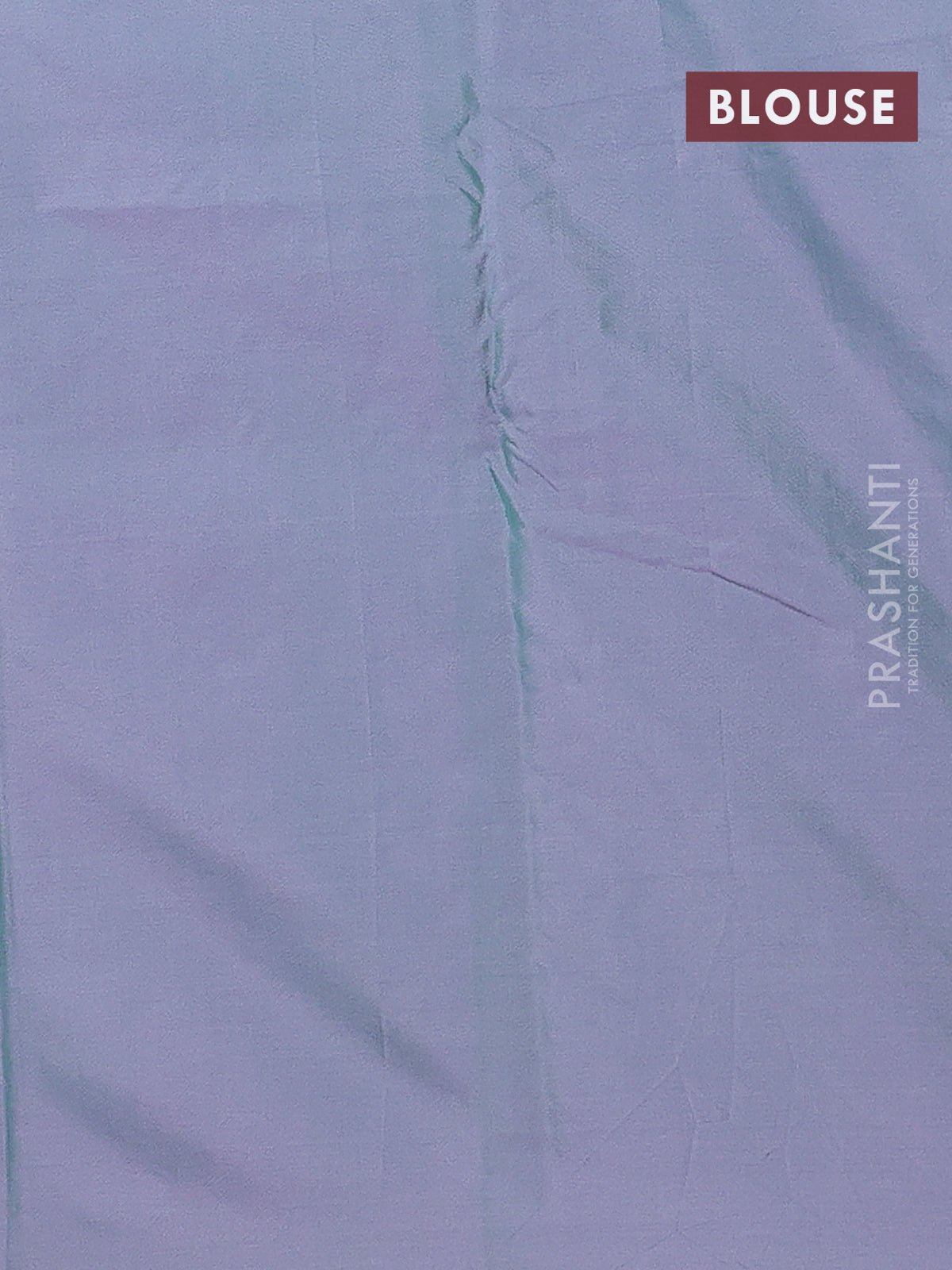 Arani semi silk saree dual shade of greenish purple with silver zari woven buttas in borderless style