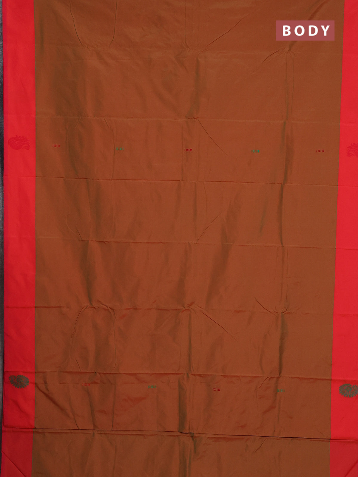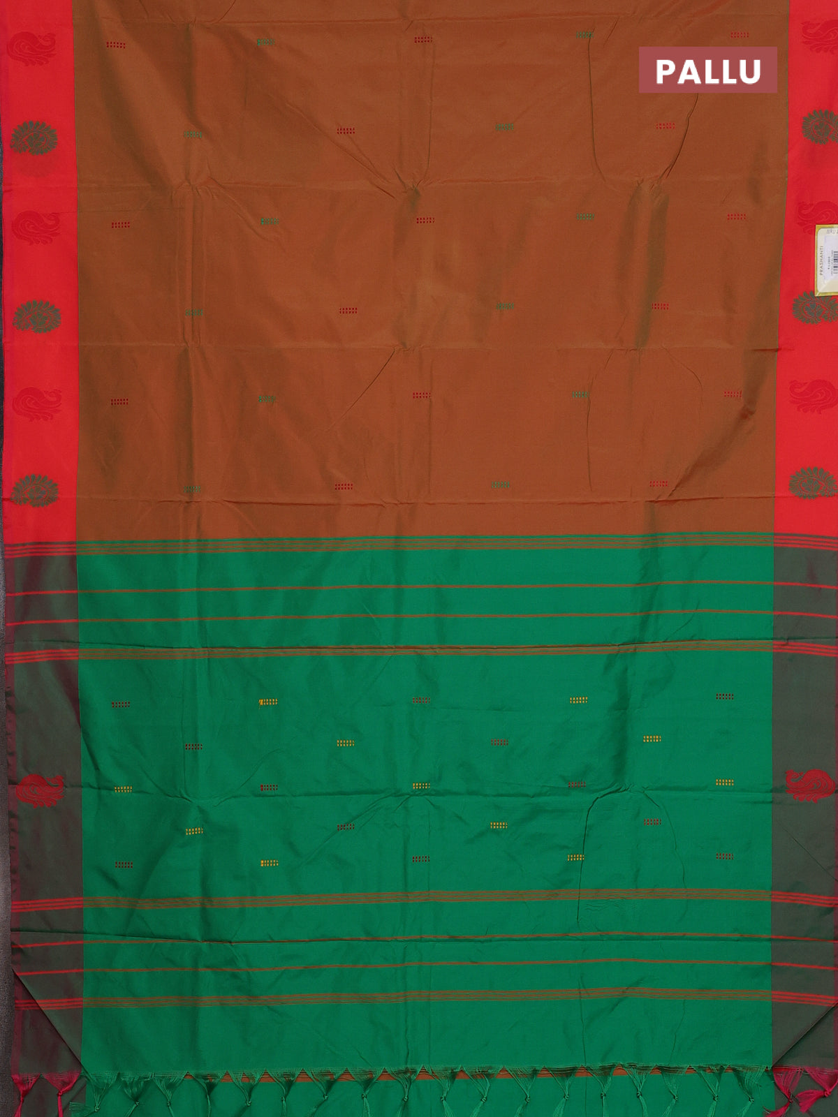 Arani semi silk saree dual shade of mustard and dual shade of green with thread woven buttas and thread woven butta border