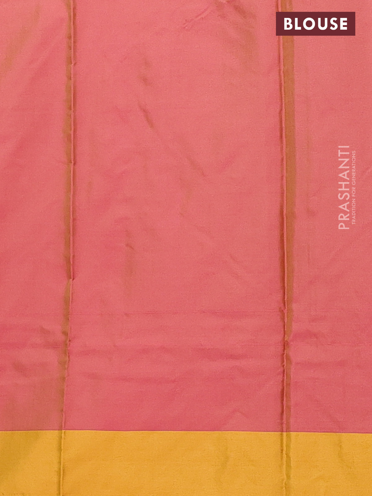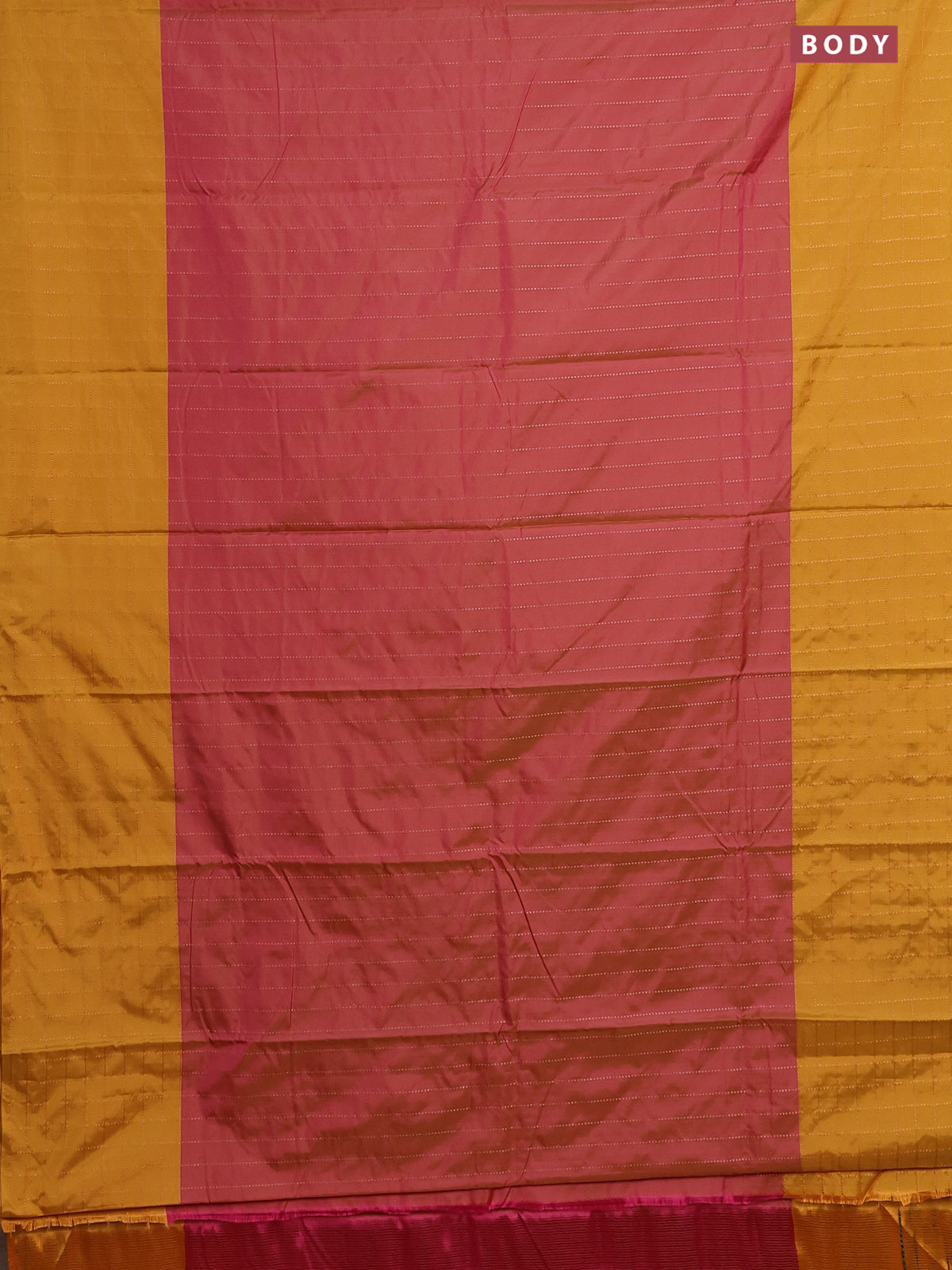 Arani semi silk saree dual shade of pink and dark mustard with allover copper zari weaves and zari checked border