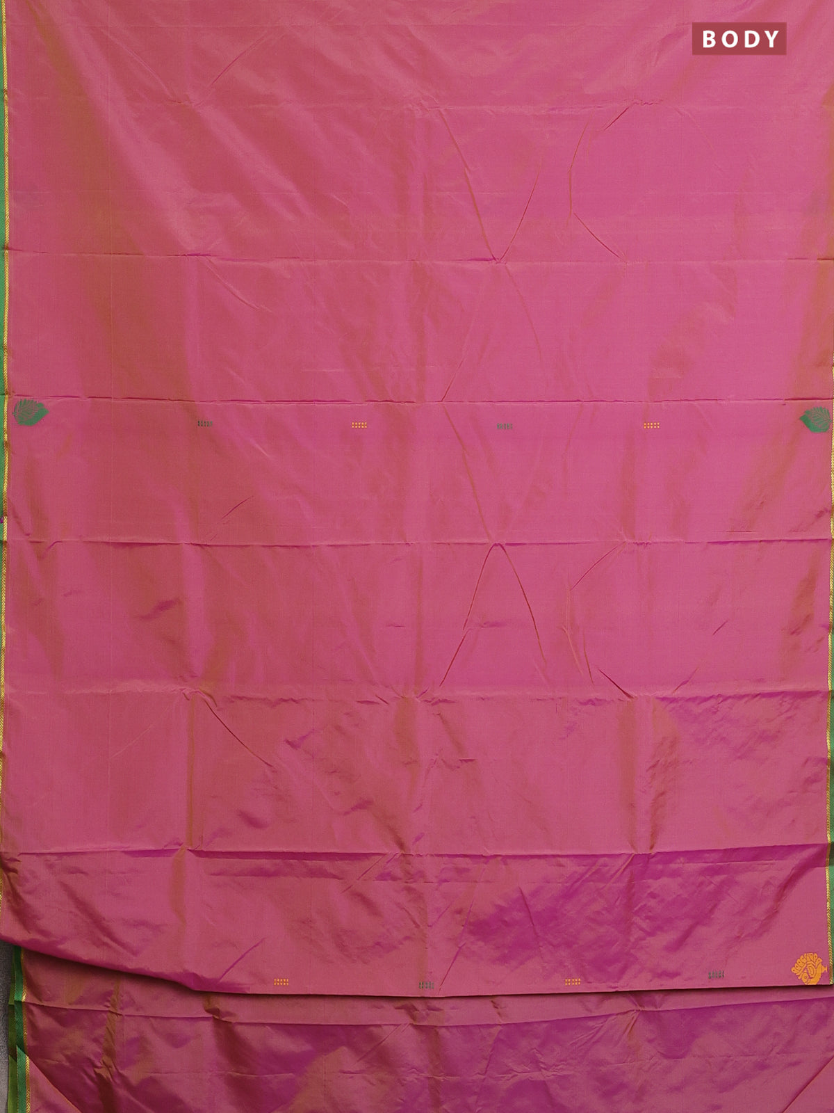 Arani semi silk saree dual shade of pink and green with thread woven buttas and thread woven butta border