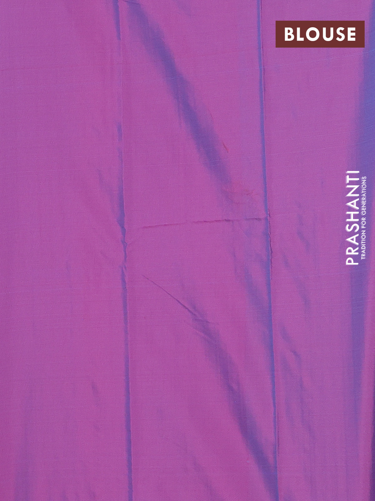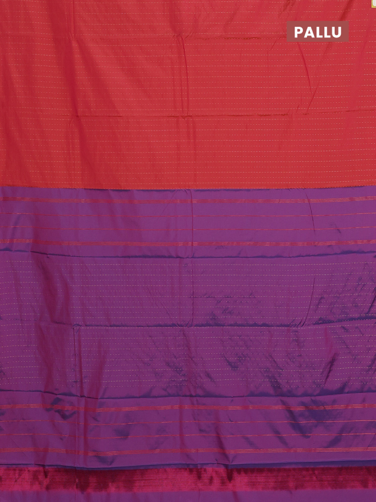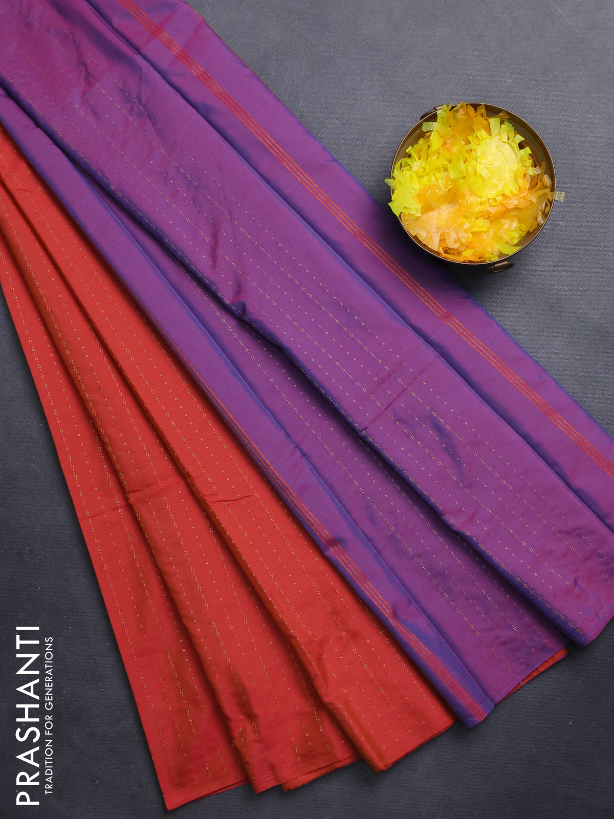 Arani semi silk saree dual shade of pinkish rust and dual shade of purple with allover copper zari weaves in borderless style