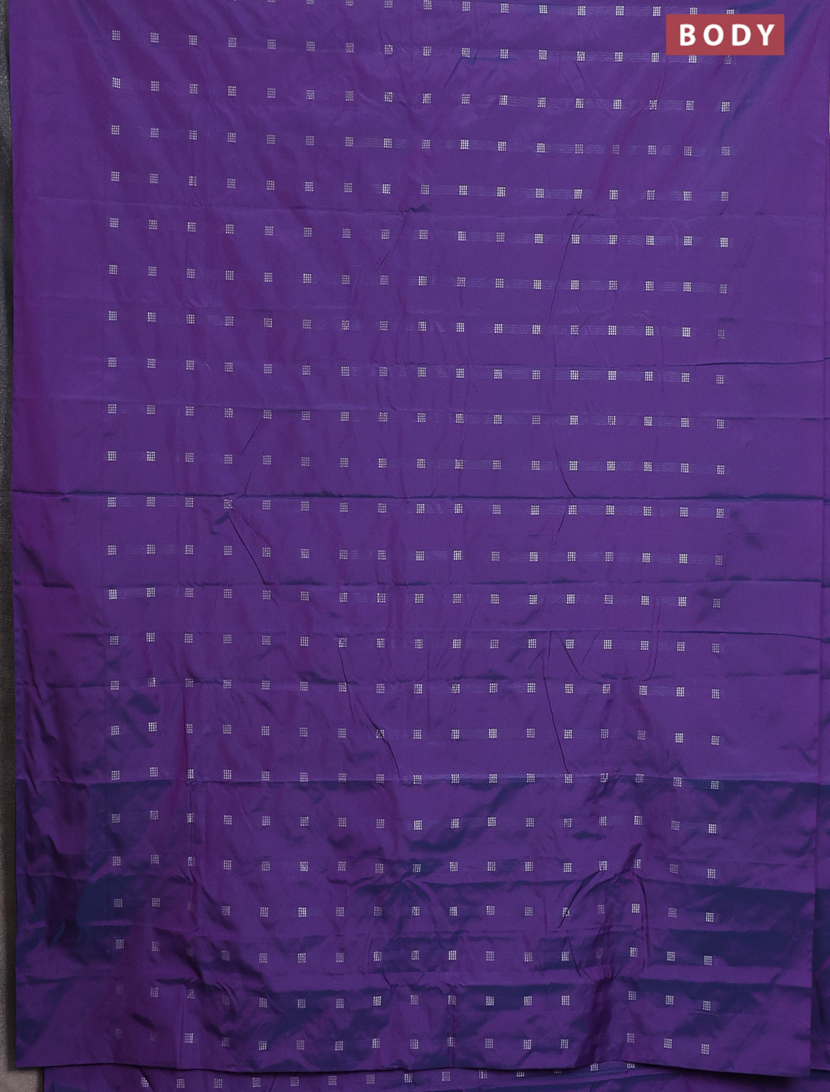Arani semi silk saree dual shade of purple with silver zari woven buttas in borderless style